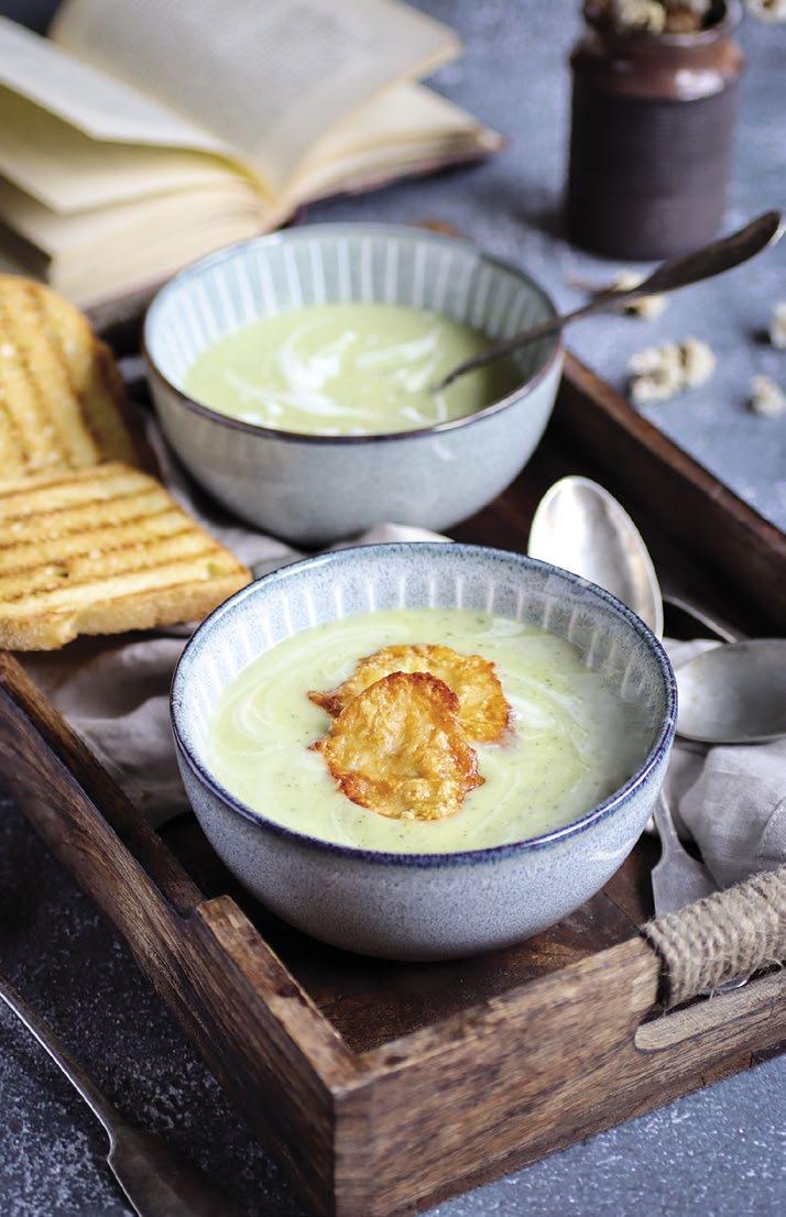 Až během sezóny nebudete vědět, co s cuketami, vzpomeňte si na tuto polévku. Je lehká, přitom krémová a křupavé sýrové chipsy jí dodávají na rafinovanosti.