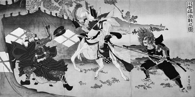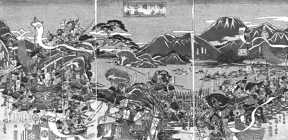 Čtvrtá bitva u Kawanakadžimy na dřevorytu z roku 1845