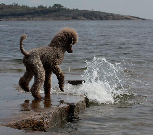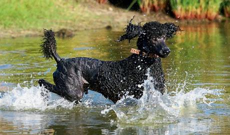 Krátce ostříhaná záď je také uportugalského vodního psa tradičním účesem, který mu měl ulehčit plavání.