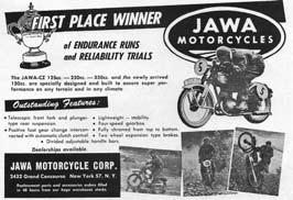 „Vítěz první ceny“ – reklama firmy Jawa Motorcycle co. z roku 1951