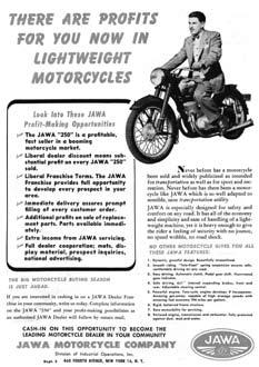 „Jízda s Jawou je dnešním trendem“ – tak lze volně přeložit jedno z hesel reklamní letákové kampaně firmy Jawa Motorcycle co. zacílené na hledání nových prodejců