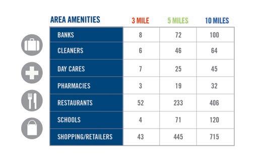 • 100+ RESTAURANTS & 12 HOTELS WITHIN 5 MINUTE DRIVE