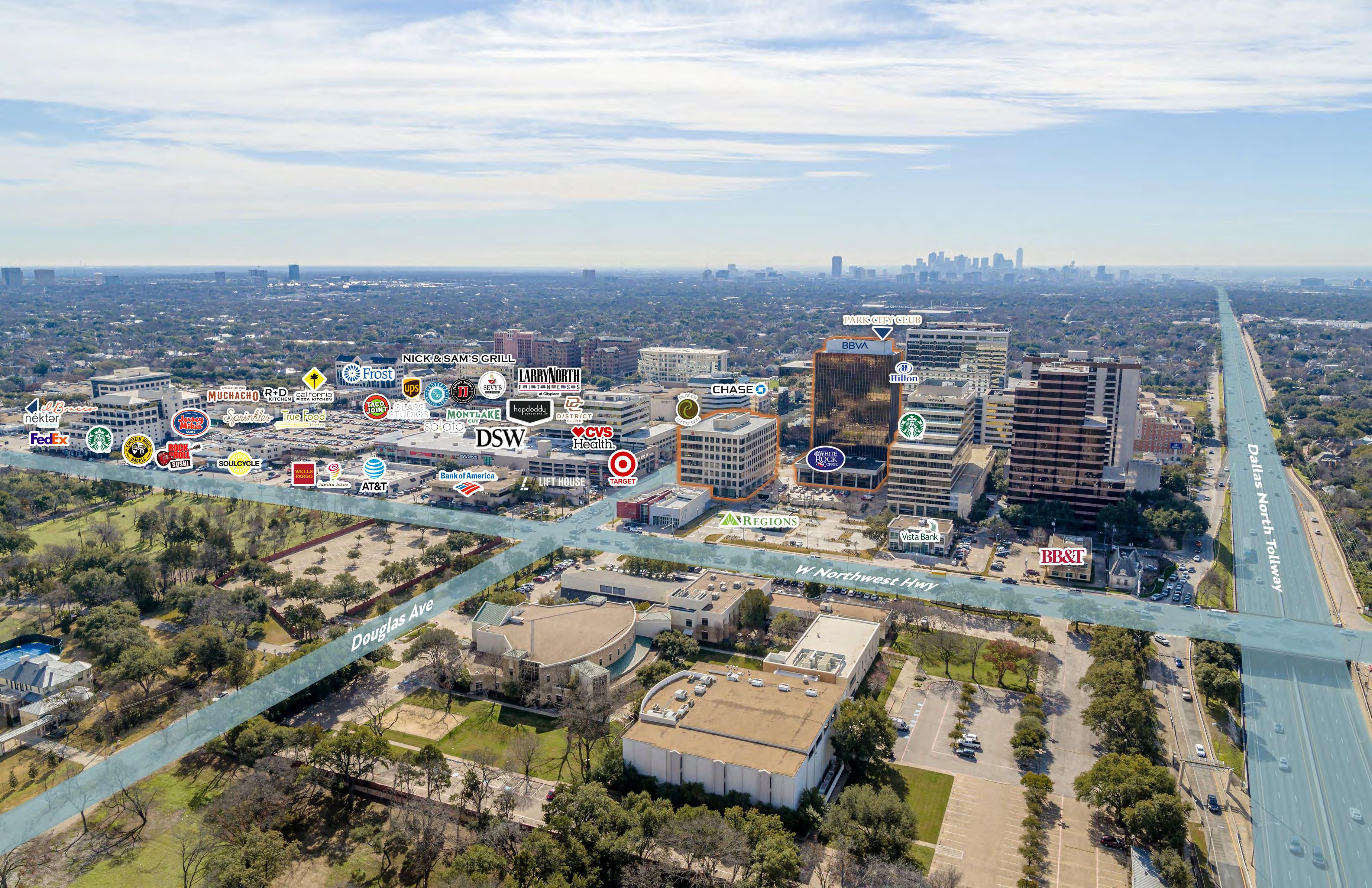 19 18 Northwest Highway 183 482 35E 35E 35E 75 75 75 Northwest Highway Inwood Road Preston Road PRESTON HOLLOW NORTH DALLAS UNIVERSITY PARK HIGHLAND PARK LOWER GREENVILLE KNOX/ HENDERSON UPTOWN LAKEWOOD Dallas Love Field Airport 9 min Drive UT Southwestern Medical Center Southern Methodist University NorthPark Center White Lake Botanical Brook Hollow Golf Club Highland Park Village Harry S Moss Park DOUGLAS CENTER 20 min to Frisco Preston Forest The Hockaday School Preston Royal Royal Oaks Country Club St. Marks School