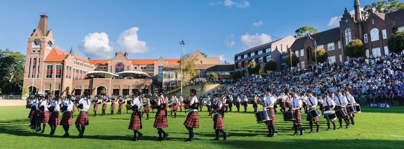 A pre-game tradition, the Pipes and Drums performed ahead of the 1st XV Rugby vs Shore School game at Gala Day.