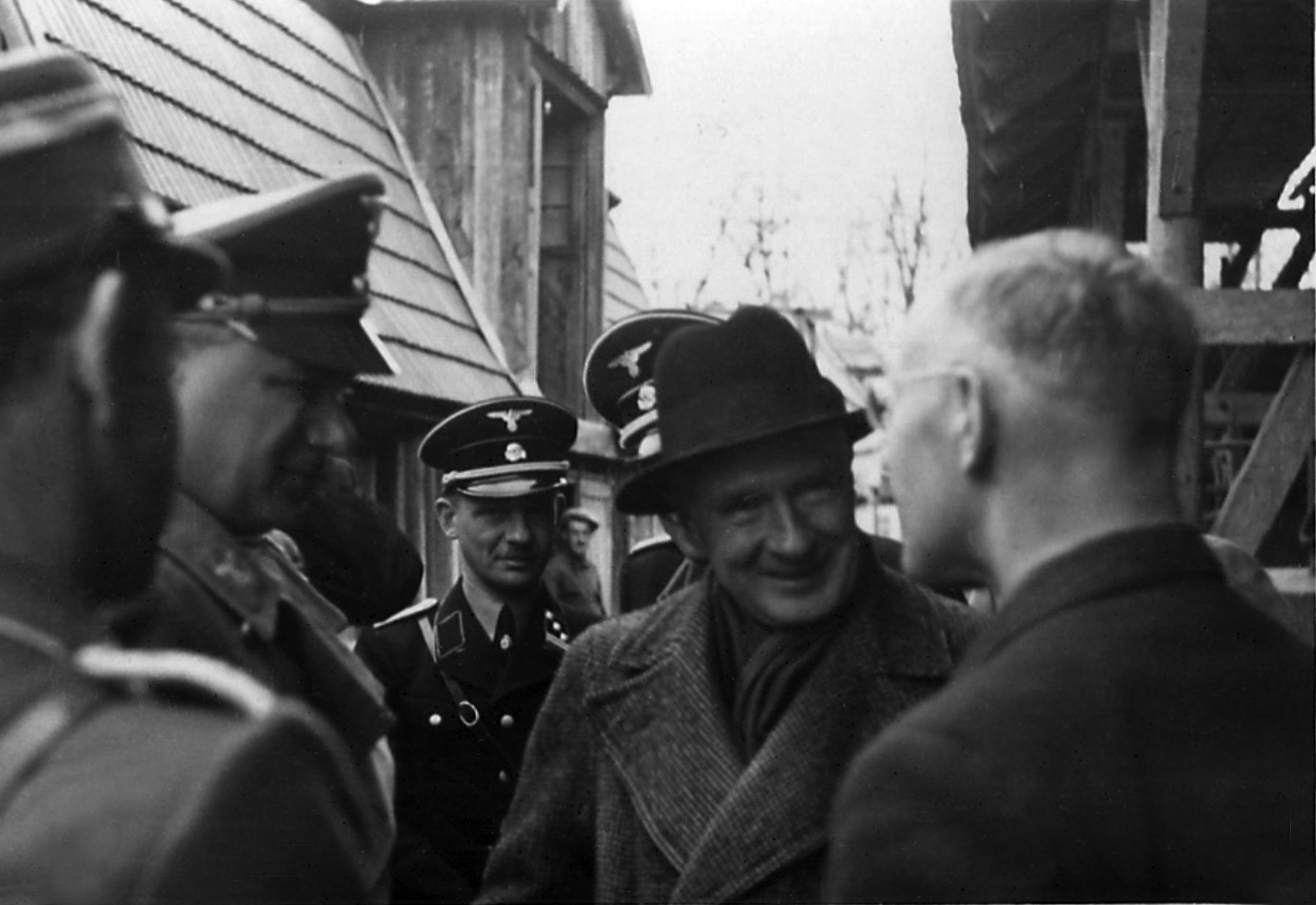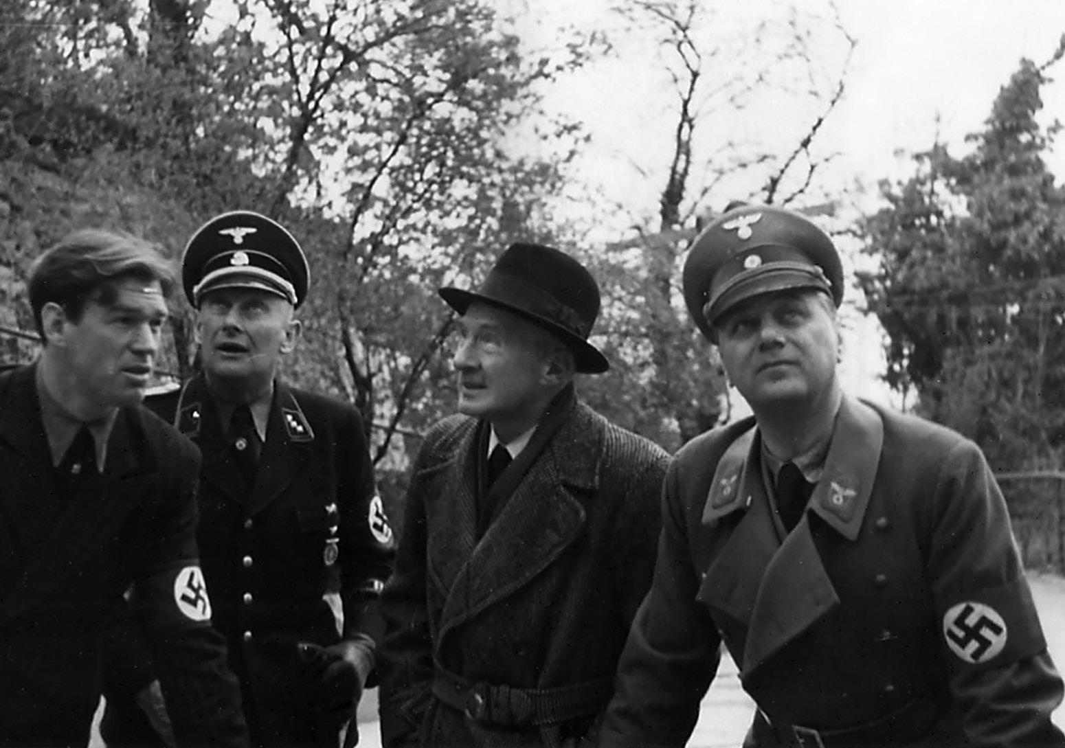 Viršuje: Alfredas Rosenbergas (dešinėje), Billas de Roppas, SS karininkas pavarde Riemeris ir vienas iš Rosenbergo personalo narių krečia pokštus prieš kamerą per savo kelionę į Austriją 1938 metais. (© James de Ropp)