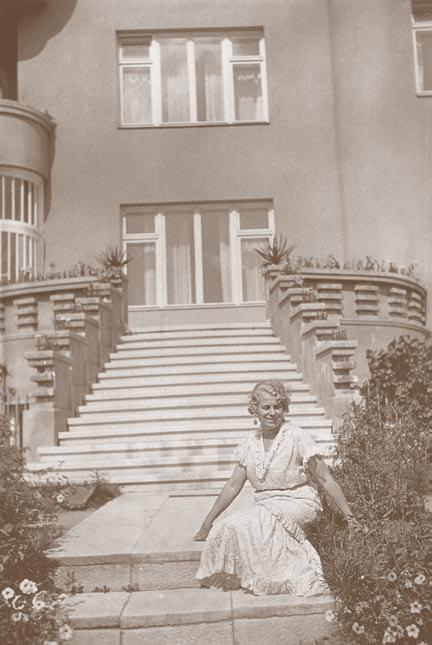 Domicelė Sleževičienė savo namų kieme. Kaunas, XX a. 4 dešimtmetis. Nacionalinis M. K. Čiurlionio dailės muziejus