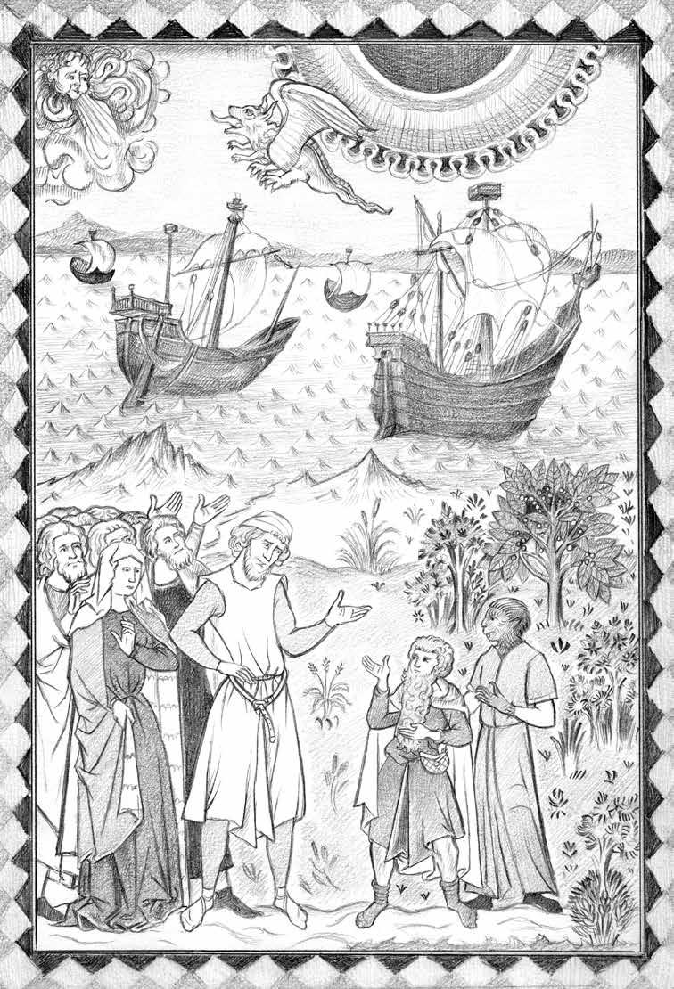 Aukštupyje išvydome jų miestus, tokius trapius, tarytum būtų nuausti iš tos pačios ryto rūkanos, iš kurios ir išniro. Atrodė, kad jie tuojau ištirps, kad išdraikys juos vėjas, šiaušiantis vandens paviršių. Buvo ten nedidukų rūmų, baltų it lūgnės žiedas. Buvo bokštelių, sakytum, nupintų iš gebenių, buvo tiltų, liaunų lyg gluosniai svyruokliai.