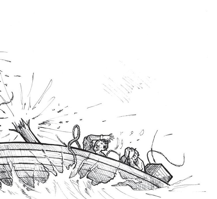 Jo tėvas atsisuko ir įsitvėrė valties krašto, nes ji ėmė pavojingai sūpuotis.