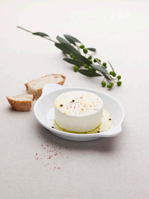 Bornholms Andelsmejeri er bl.a. berømt for sine blåskimmeloste, som har høstet talrige priser i internationale ostekonkurrencer. I 2024 løb mejeriet fx med to titler som Best of Class ved World Cham pionship Cheese Contest i Wisconsin. En af de præmierede oste hedder “Aged Blue Flowers” (billedet) - en mycella, der modner i et potpourri af blomster og krydderurter og smager lige så spektaku lært, som den ser ud. Aged Blue Flowers er en del af en ny serie af specialoste, som Bornholms Andelsmejeri er i proces med at forædle. Mejeriet har engageret den erfarne TV 2-kok og produktudvikler Magnus Laier Sonne til at bidrage til den kreative udvikling af serien. Ostene er i første omgang tiltænkt restauranter og specialforretninger, og forventningen er, at de første oste er klar til salg inden udgangen af 2025.