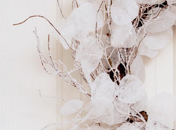 Elegant Snow Twig & Lunari Leaf Wreath White (60cmD)