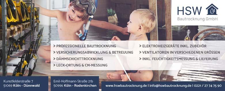 Nachdruck nur mit Genehmigung der Redaktion gestattet. Für unverlangt eingesandte Manuskripte, keine Gewähr. Der „Kölner BilderBogen” wird an Banken, Sparkassen und Einzelhändler verteilt und kann schriftlich beim Verlag bestellt werden. Außerdem liegt unser Heft bei vielen Rodenkirchener Arztpraxen, Friseuren, in Restaurants und Ämtern zum Lesen und Mitnehmen aus. Es gilt die Anzeigenpreisliste Januar 2025. Alle Anzeigen sind urheberrechtlich geschützt und dürfen nur mit Genehmigung des Verlages und gegen Urheberschutzgebühr weiter verwendet werden. Gender-Hinweis: Aus Gründen der besseren Lesbarkeit wird auf die gleichzeitige Verwendung der Sprachformen männlich, weiblich und divers (m/w/d) verzichtet. Sämtliche Personenbezeichnungen gelten gleichermaßen für alle Geschlechter.