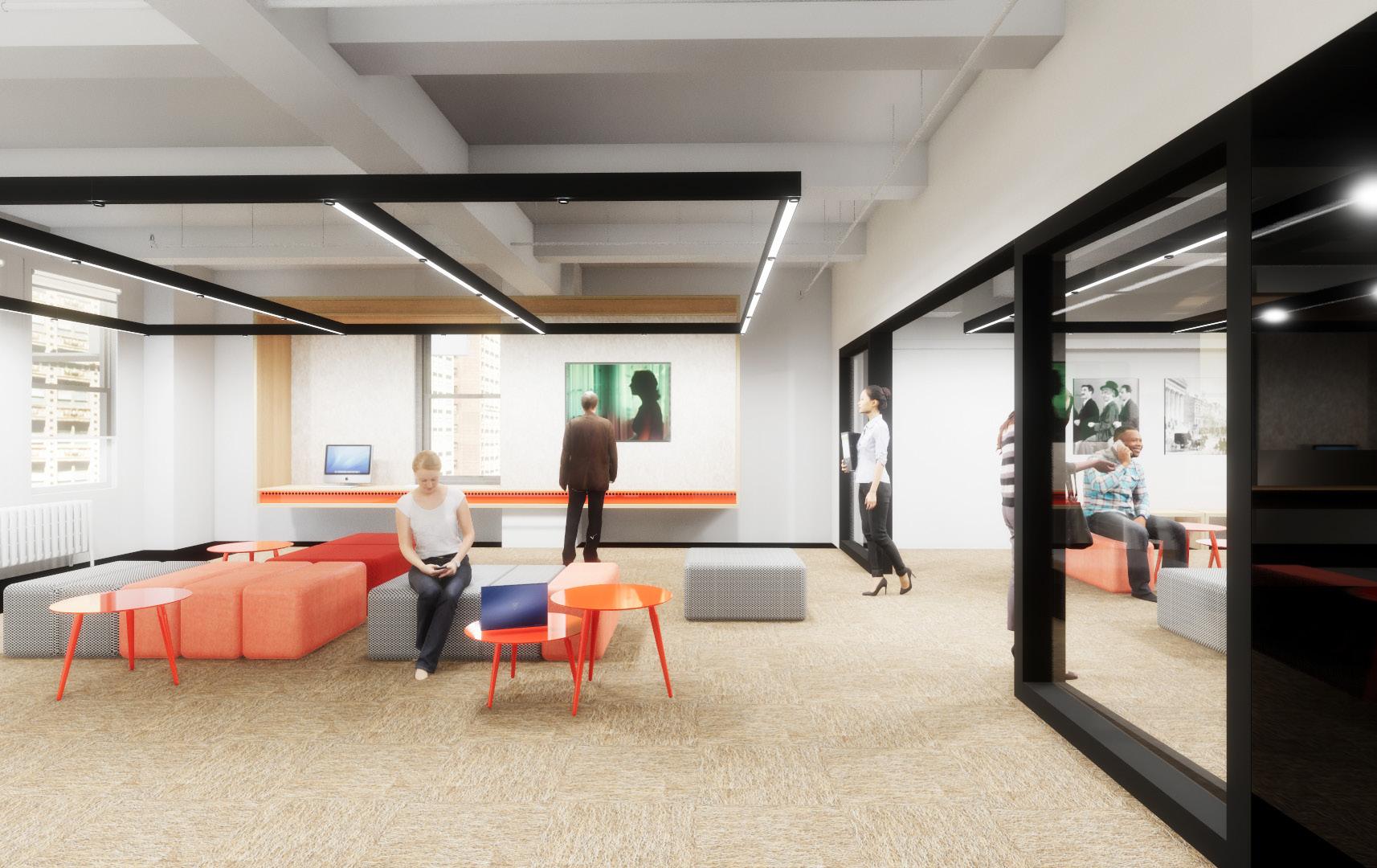 The International Cinematographers Guild (ICG), which currently has offices in Los Angeles, Atlanta, Chicago, and New Orleans, sought an Eastern Region location. The ninth floor of an existing, mixed-commercial condo building on 70 West 36th Street in New York City was selected as the site. The ICG will soon occupy a 7,200 square-foot office space which has been renovated to include new enclosed offices, multi-purpose rooms, and open-area workspaces.