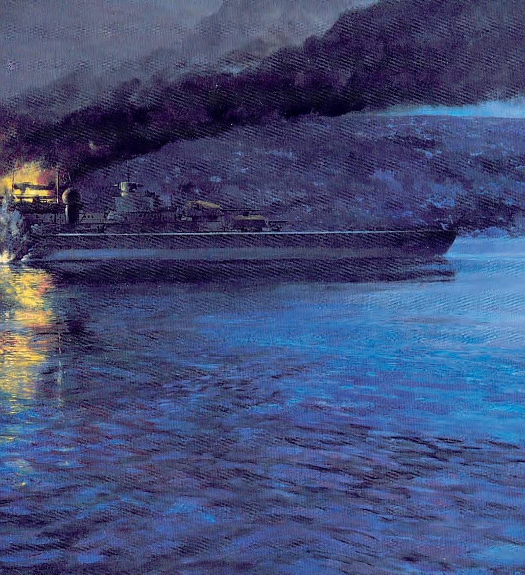 The Kriegsmarine squadron in rapid formation, as Assault Group 5 sailed into Oslo@orden on 9 April 1940, with extinguished lanterns and no flags on the mastheads.