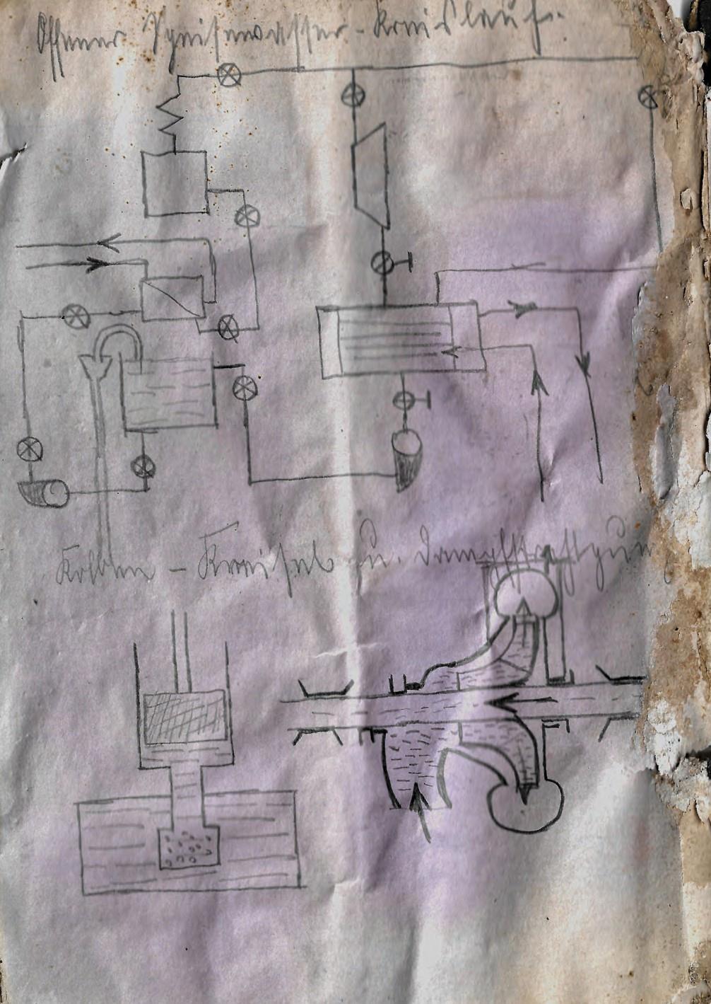 Here, Willi has drawn a sketch showing the principle of a steam boiler with circuits for feed water, steam and associated valves.