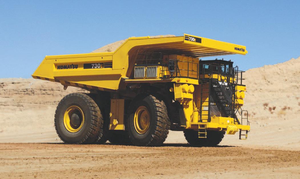 The Komatsu 730E cab design provides a comfor table and productive environment to meet today’s mining demands. The cab includes tinted windows, heating and air conditioning, acoustical insulation, double sealed doors, and provides filtered and pressur ized air