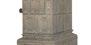 Niezbyt trafny dobór pro porcji wkładu do obudowy paleniska. Po lewej zbyt duży wkład lub zbyt deli katna obudowa, dodatkowo niefortunnie wąska i płaska półka w strefie podstawy. Po prawej zbyt mały wkład (okienko z wido kiem ognia) w stosunku do klasycznej obudowy. Półkoliste zwieńczenie obudowy portalowej gryzie się ze zbyt małym, kwadratowym wkładem. Realizacja w której zalety pelletowego wkładu wygrały z proporcjami.