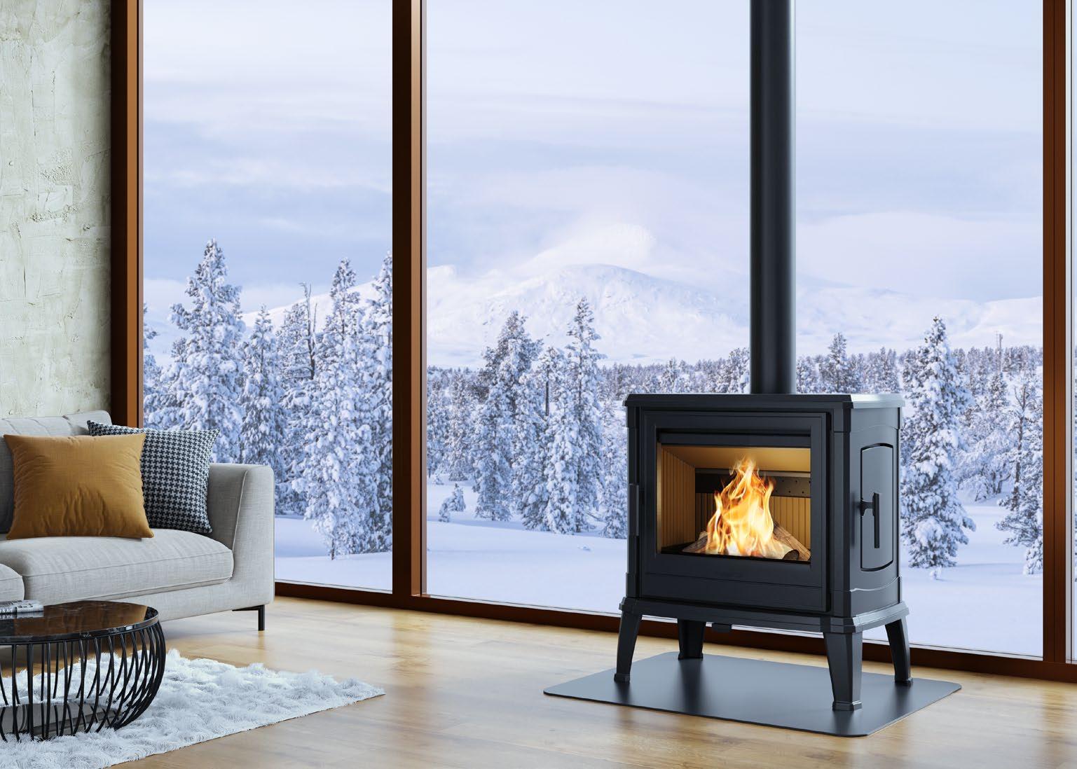KRATKI ERIK is a modern freestanding stove on a leg with a rotating body from the PRO line, covered by a 10-year warranty. Thanks to its sealed combustion chamber, it works perfectly with heat recovery systems and complies with Ecodesign standards.