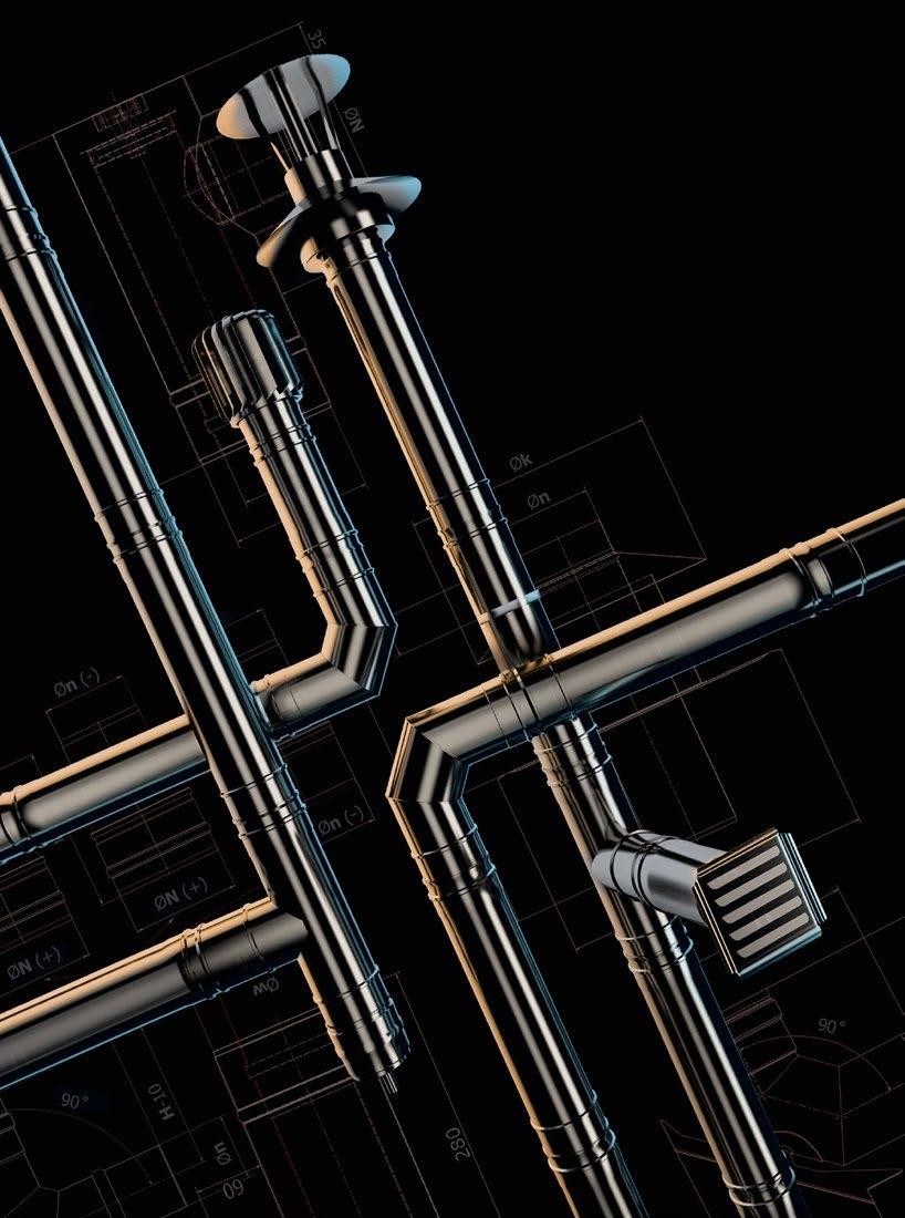 Dual Wood Stove is a premium-class chimney system, available as standard in two colours: BLACK and ANTHRACITE, designed as a functional and aesthetic complement to the latest wood-burning stoves. The system meets the requirements of modern heating installations, ensuring safe operation, high resistance to elevated temperatures and condensate, as well as precision manufacturing in line with current construction standards. Upon individual request, the system can be manufactured in any colour from the RAL palette, enabling full integration of the chimney with the interior design concept and the architectural character of the building.
