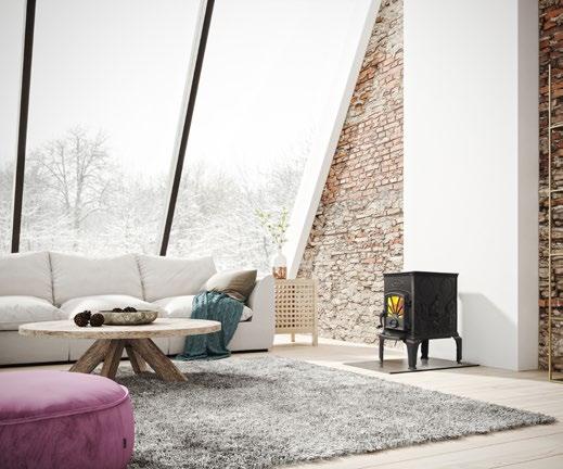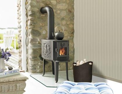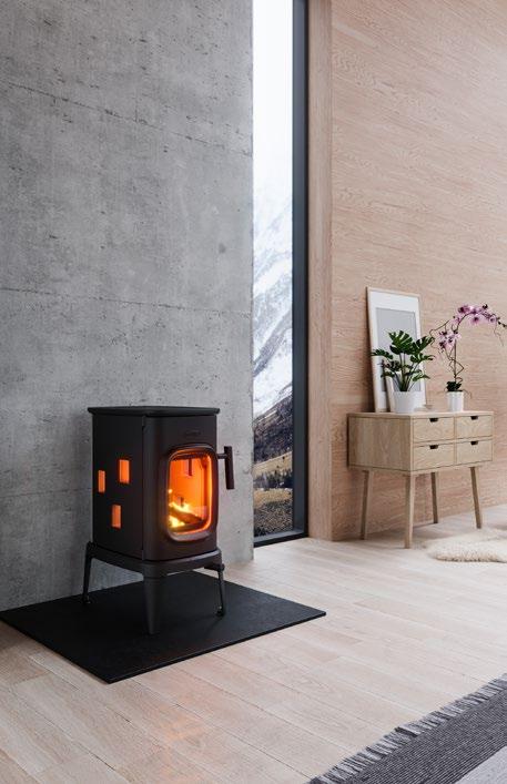 Ogień miał zawsze szczególne znaczenie w organiza cji wnętrza budynku mieszkalnego w krajach Północy. Wokół niego koncentrowało się życie rodzinne, dawał poczucie bezpieczeństwa i spokoju. Wykształcone przez lata modele kominków i pieców są popularne do dzi siaj. Niezbędne udoskonalenia techniczne, zapewnia jące bezpieczeństwo użytkowania, nie ingerują zbyt mocno w tradycyjne formy. Szczególnie charaktery styczne są piecyki wolno stojące, które swoimi pro stymi, bezpretensjonalnymi kształtami idealnie wpi sują się w ponadczasową stylistykę wnętrz skandynaw skich. W skandynawskich domach znajdziemy nie