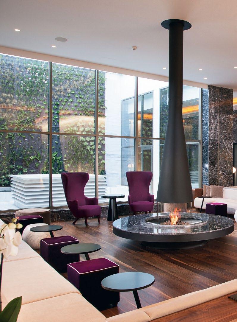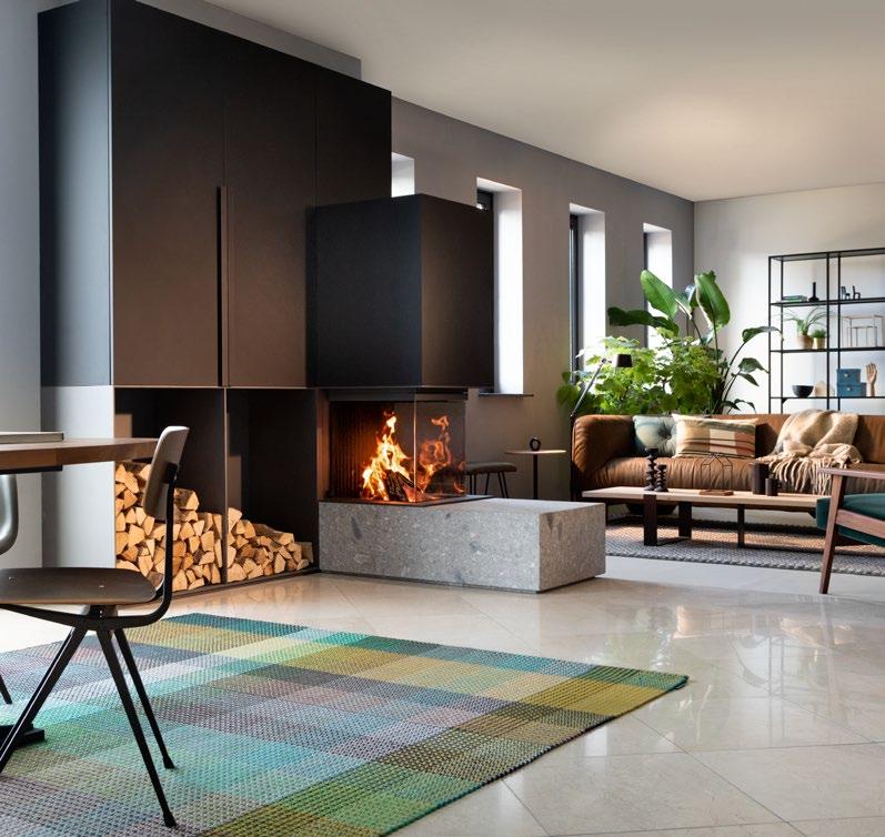 Koncepcja hygge (duńskie słowo oznaczające komfort, wygodę, przytulność) jest kwintesencją filozofii kształto wania przestrzeni i wnętrz, tak by miejsce zamieszkania było przytulne, bezpieczne i ciepłe. Żywy ogień jest jego nieodłącznym elementem. Zapewniają go kominki i pie cyki, a nawet palące się świeczki. Namiastką prawdziwego ognia może stać się nawet… laptop lub telewizor, jeżeli tylko znajdziemy specjalny program lub aplikację, w któ rej „na żywo” emitowany jest płonący ogień w kominku. Należy zaznaczyć, że nie jest to nowość z popularnych serwisów streamingowych, a wynikający ze skandynaw skiej tradycji trend – już kilkadziesiąt lat temu powstały tam tego typu kanały telewizyjne.