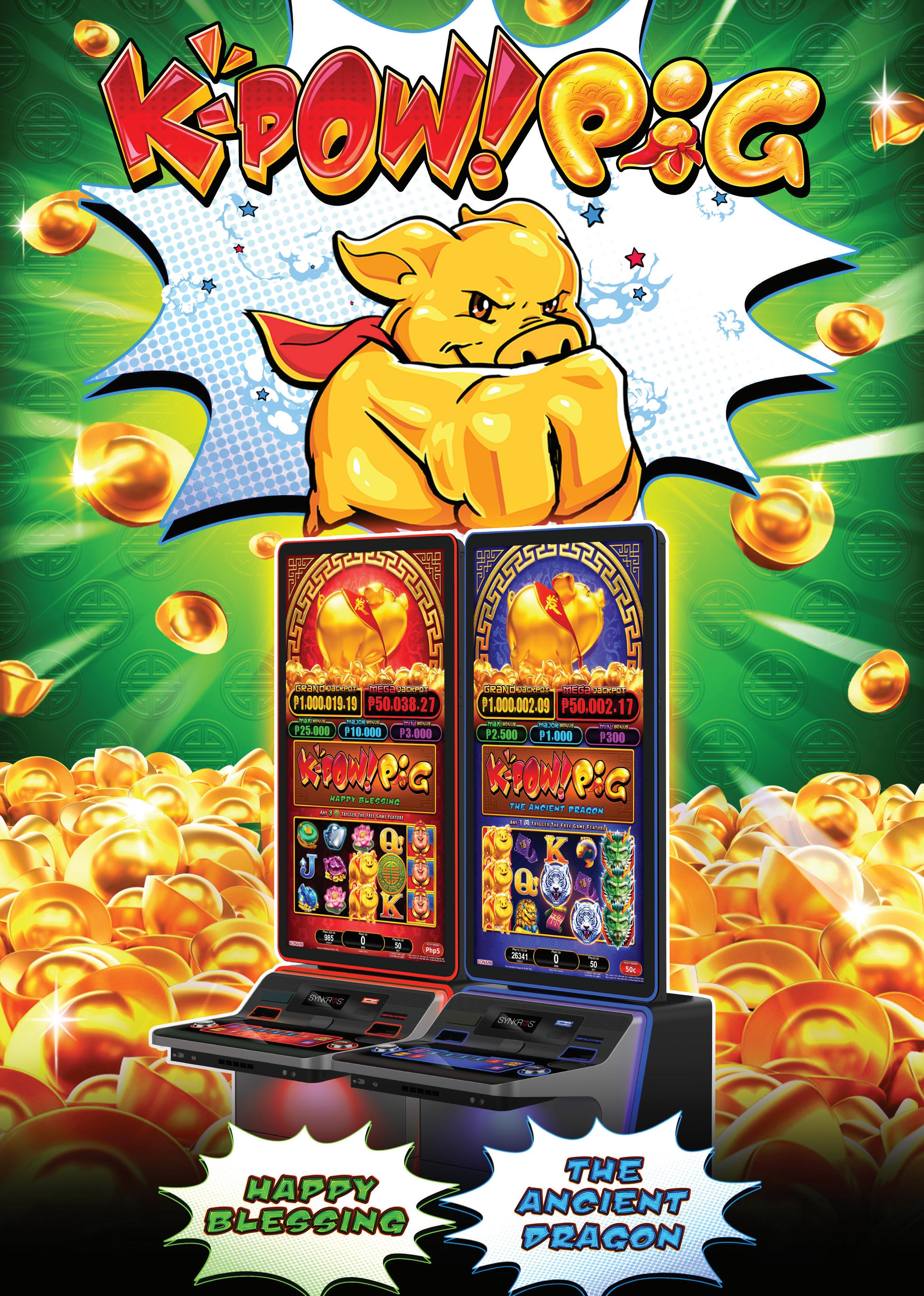 • Any 6 or more ‘Pig’ symbols trigger the K-Pow Pig feature.