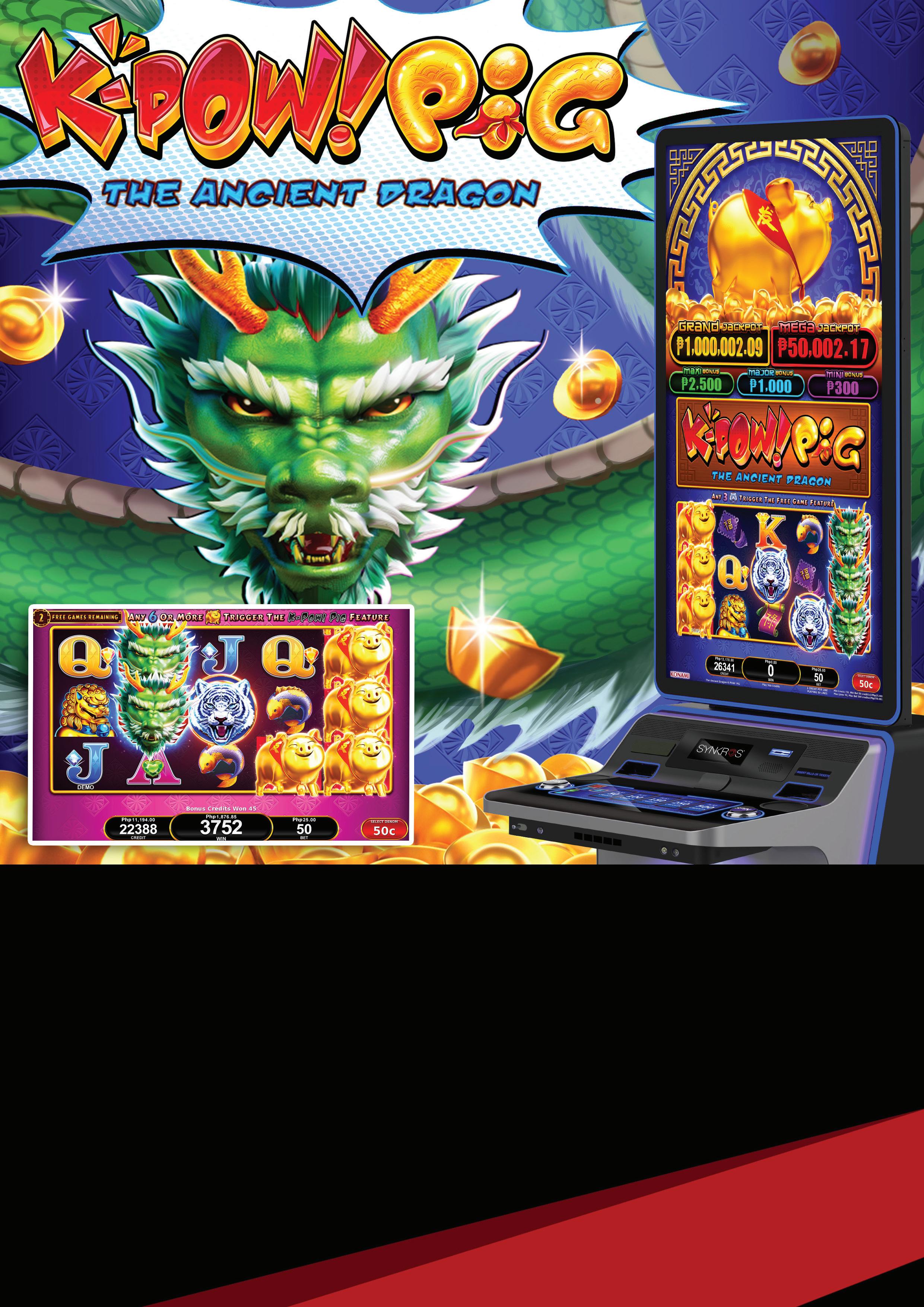 • When a column of 3 bonus prize symbols appears in the K-Pow Pig feature, the Piggy Prize reel is activated and spun.