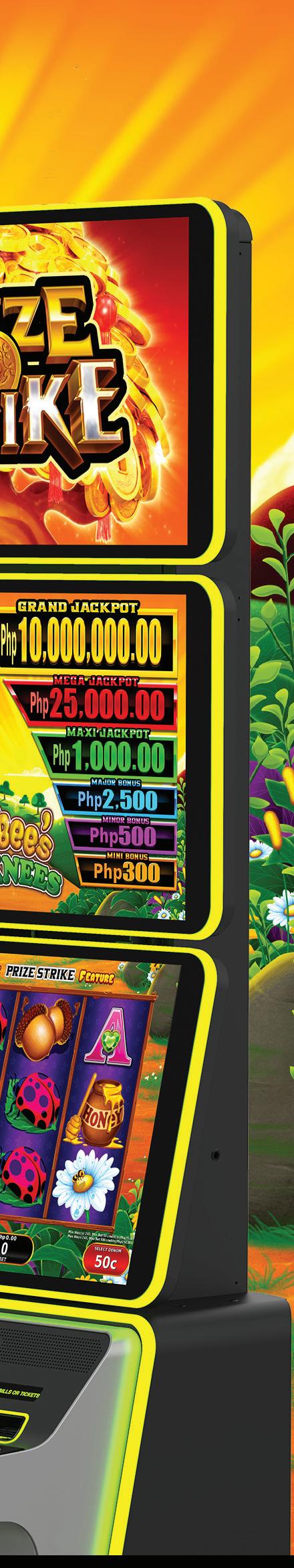 • Mega Jackpot, Major Bonus, Minor Bonus, Mini Bonus and Credit Prizes can appear on any reel.