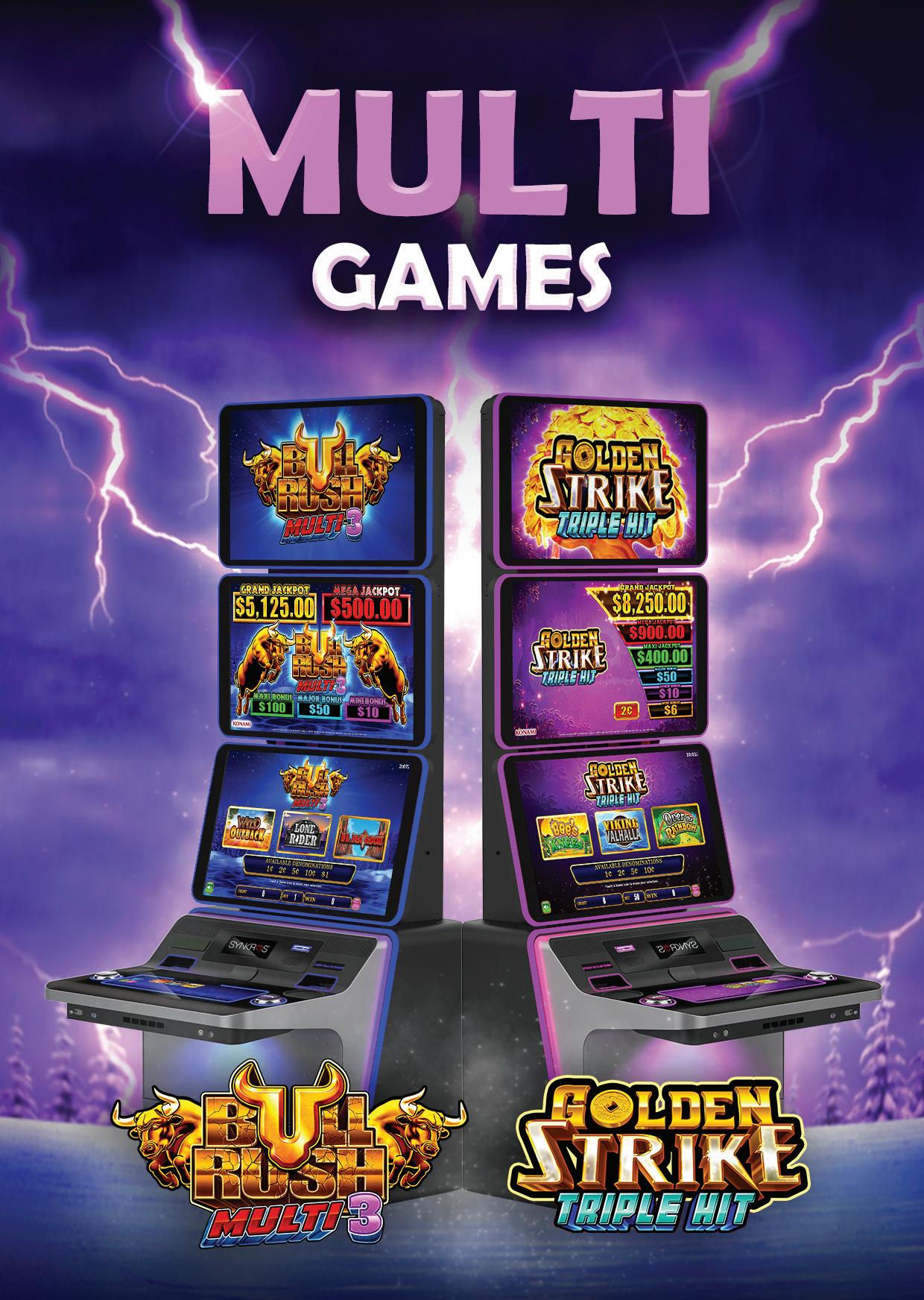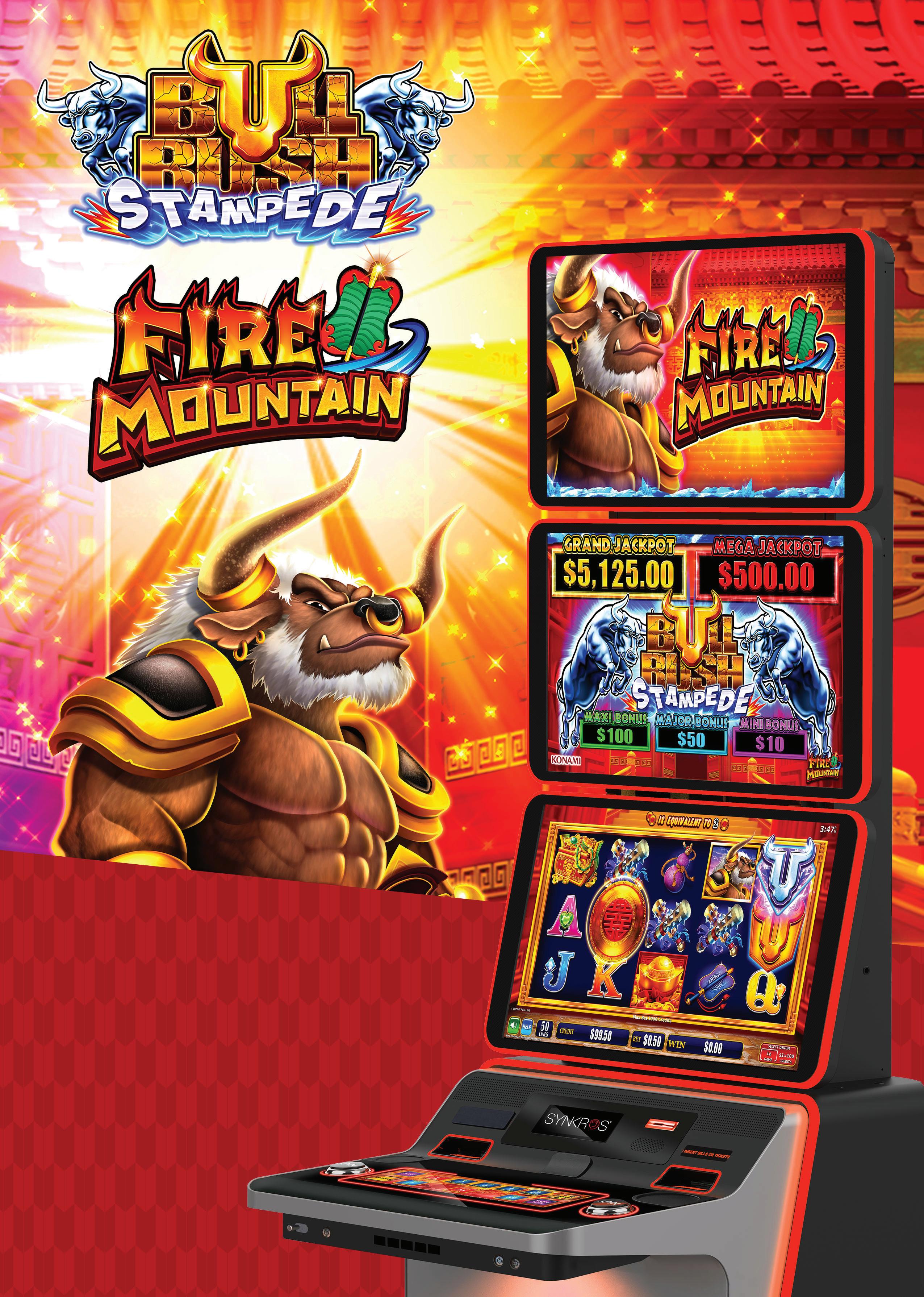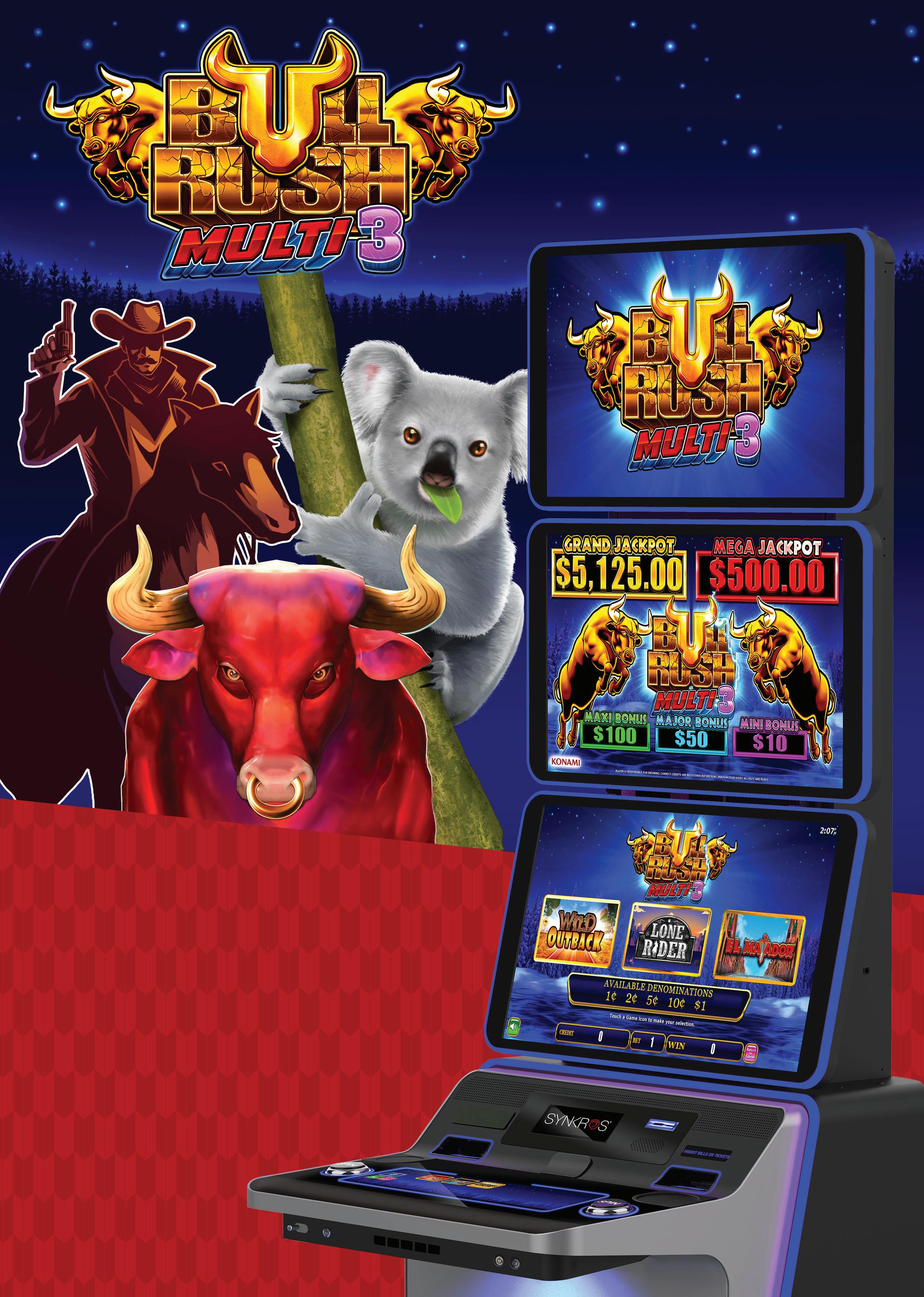 Bull Rush Stampede has been one of the biggest hits for both Konami and the market over the past twelve months, with Minotaurās Treasure and Fire Mountain igniting gaming ļ¬oors across the country. With such great results we have committed to two more titles in this series with game three Apis Treasure and game four combining the best Bull Rush game Maximus Money with the Stampede series.