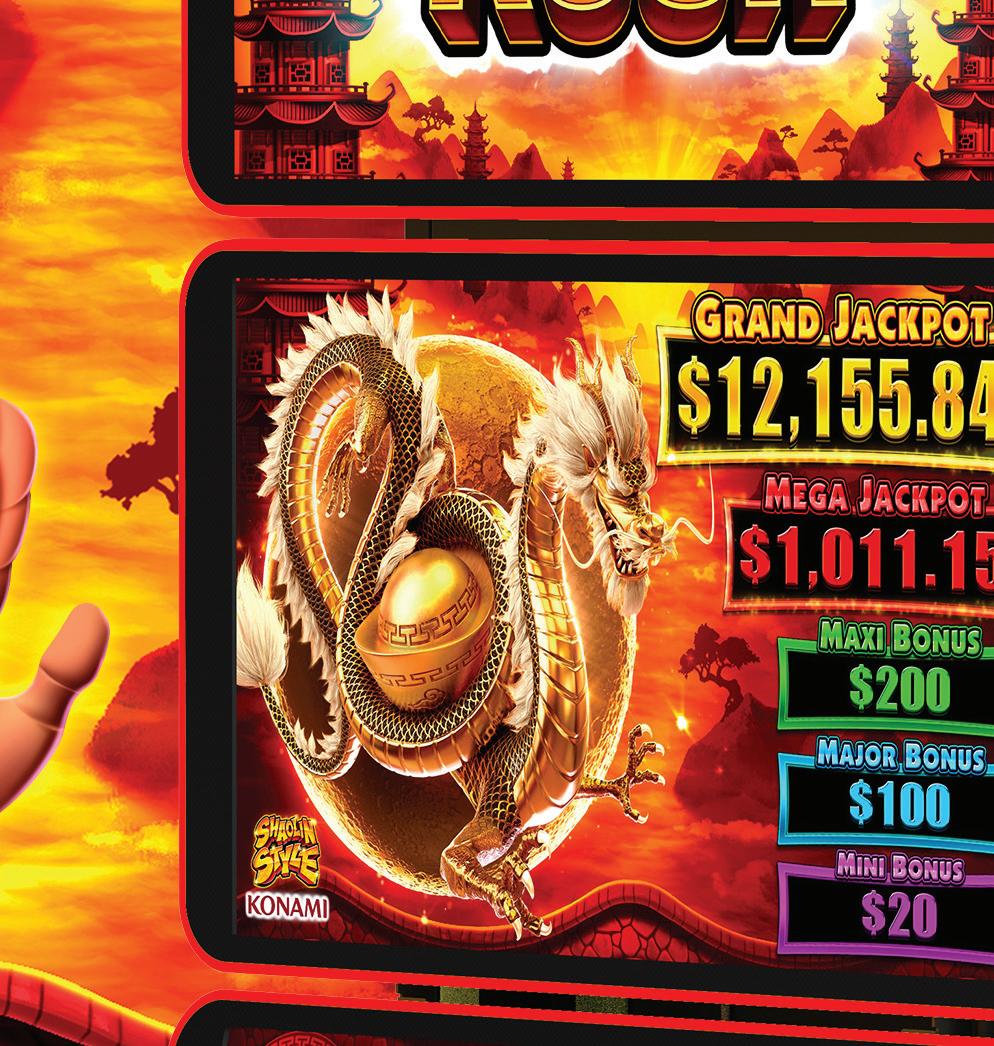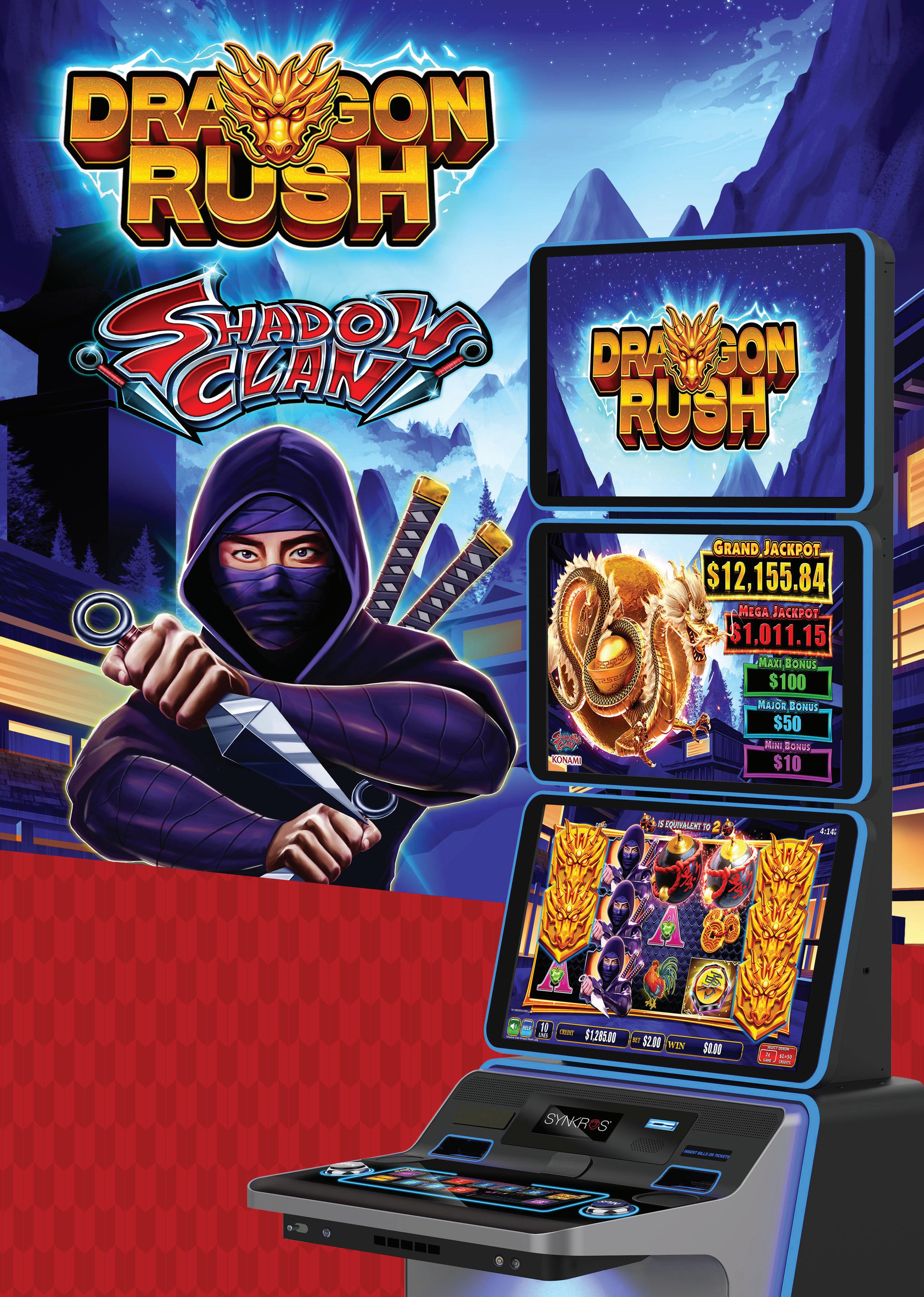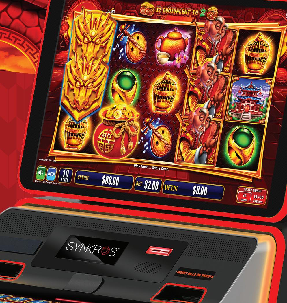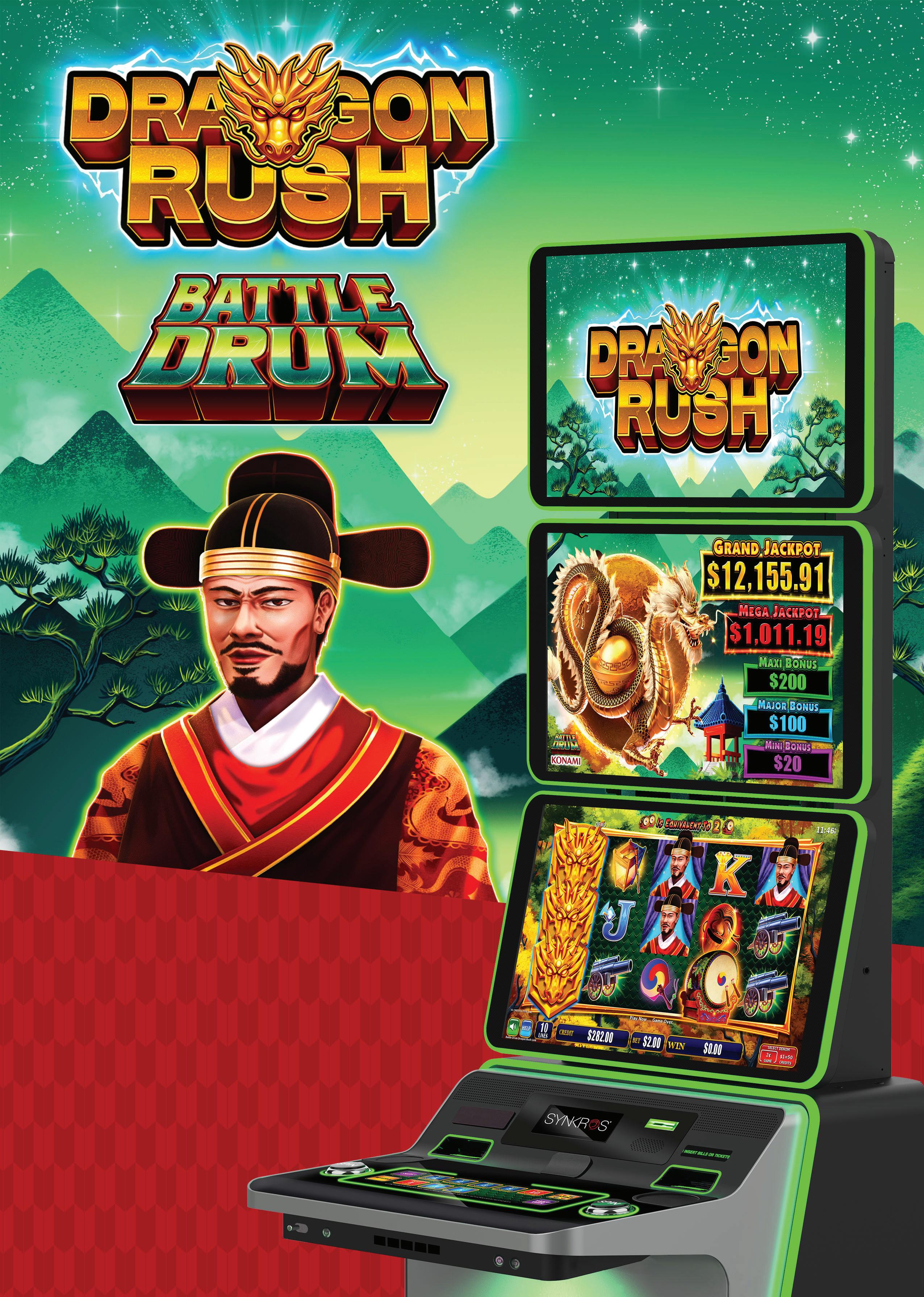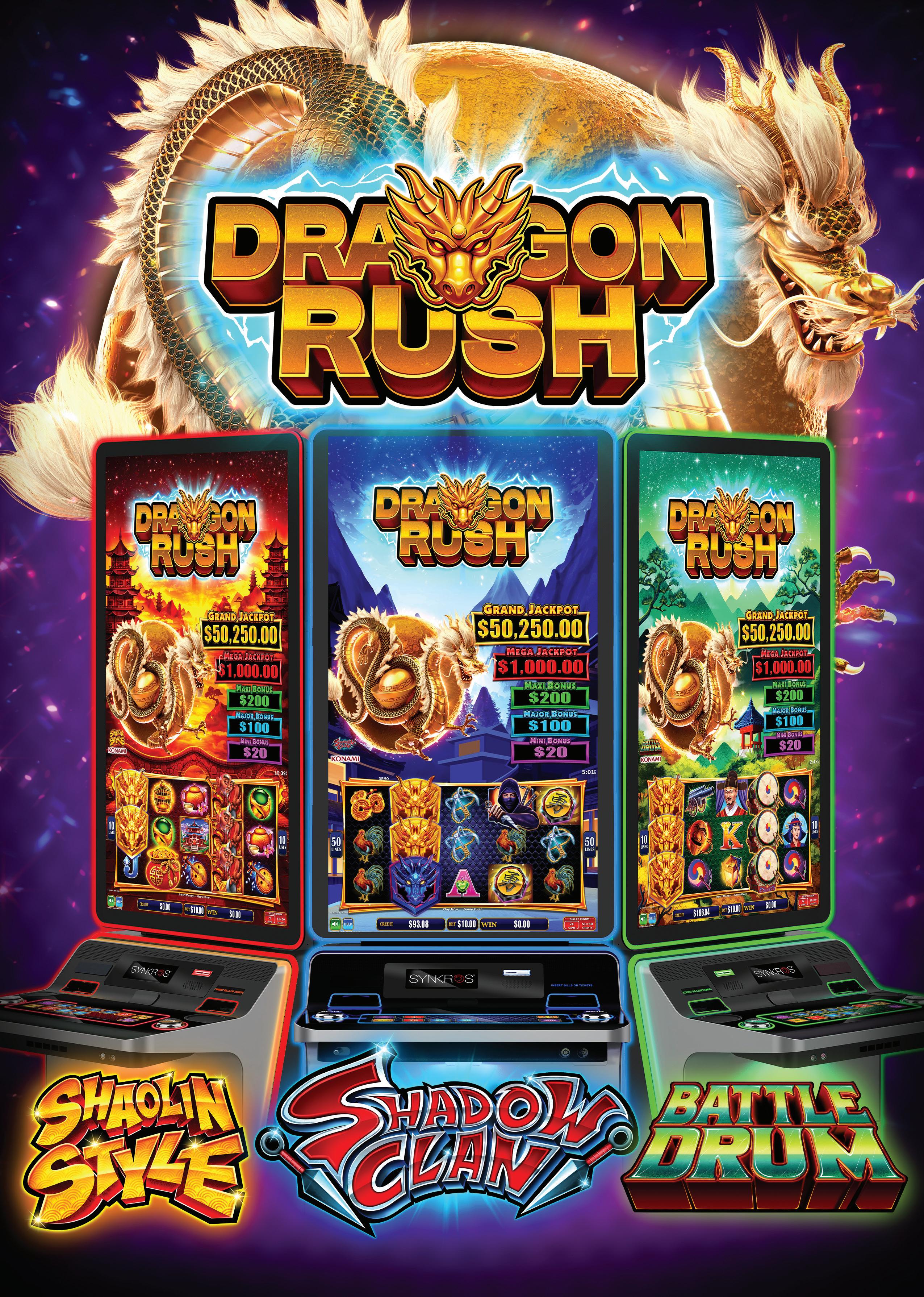 Last yearās AGE standout product was Dragon Rush, the next evolution of our All Aboard and Bull Rush series. Dragon Rush takes the repeat win feature to the next level by combining multipliers, Xtra Hits, and boosted credit prizes. The launch lineup includes three new free game features across Shaolin Style, Shadow Clan, and Battle Drum, all supported by enhanced, innovative graphics. This product is ready to roar onto your gaming ļ¬oors.