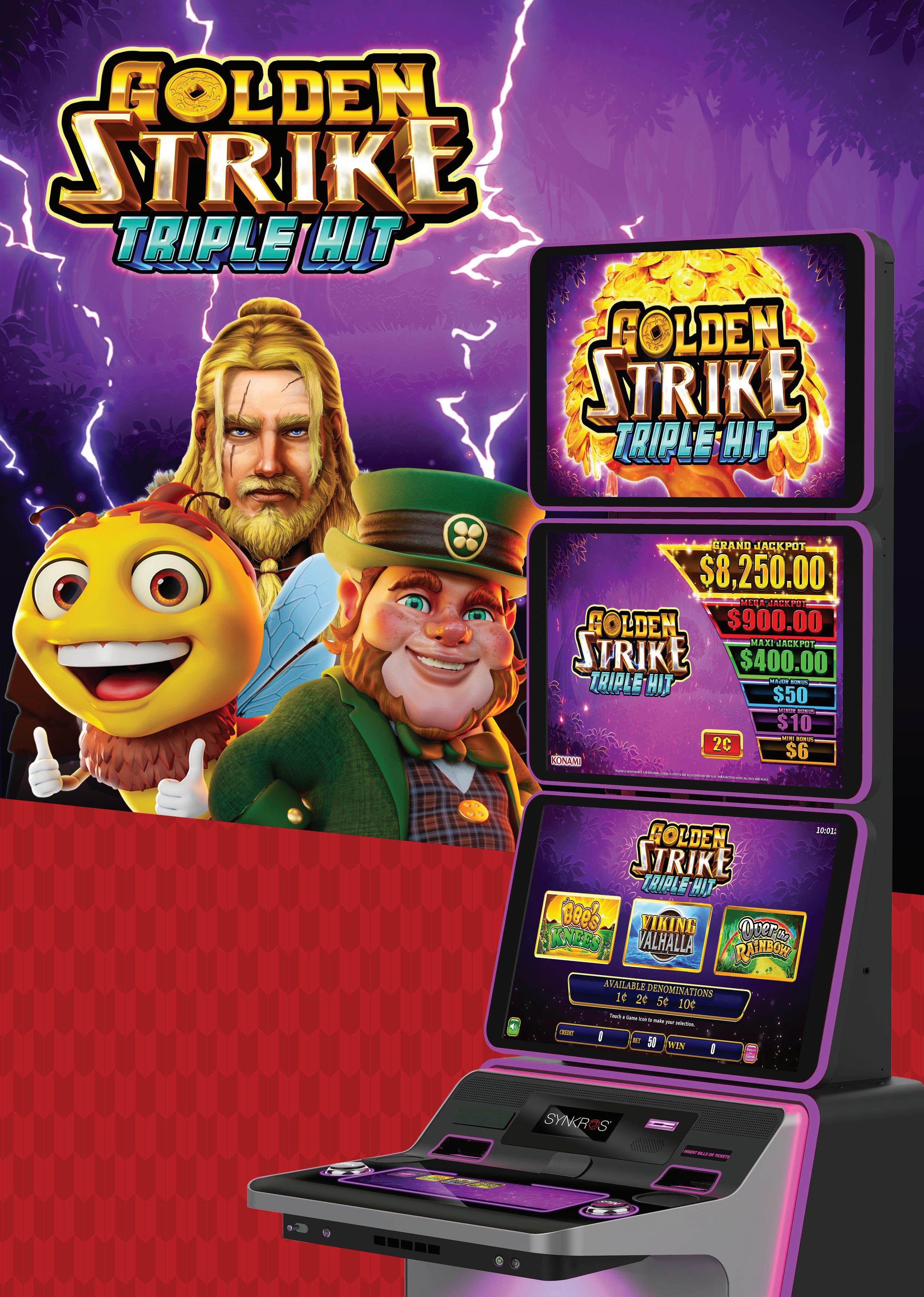 ⢠Golden Strike Feature - Experience repeat pay with a twist. 6 āTreeā Symbols Trigger the Golden Strike Feature. Repeat your pays with a top screen tally. Experience multiplied prizes within the main screen!