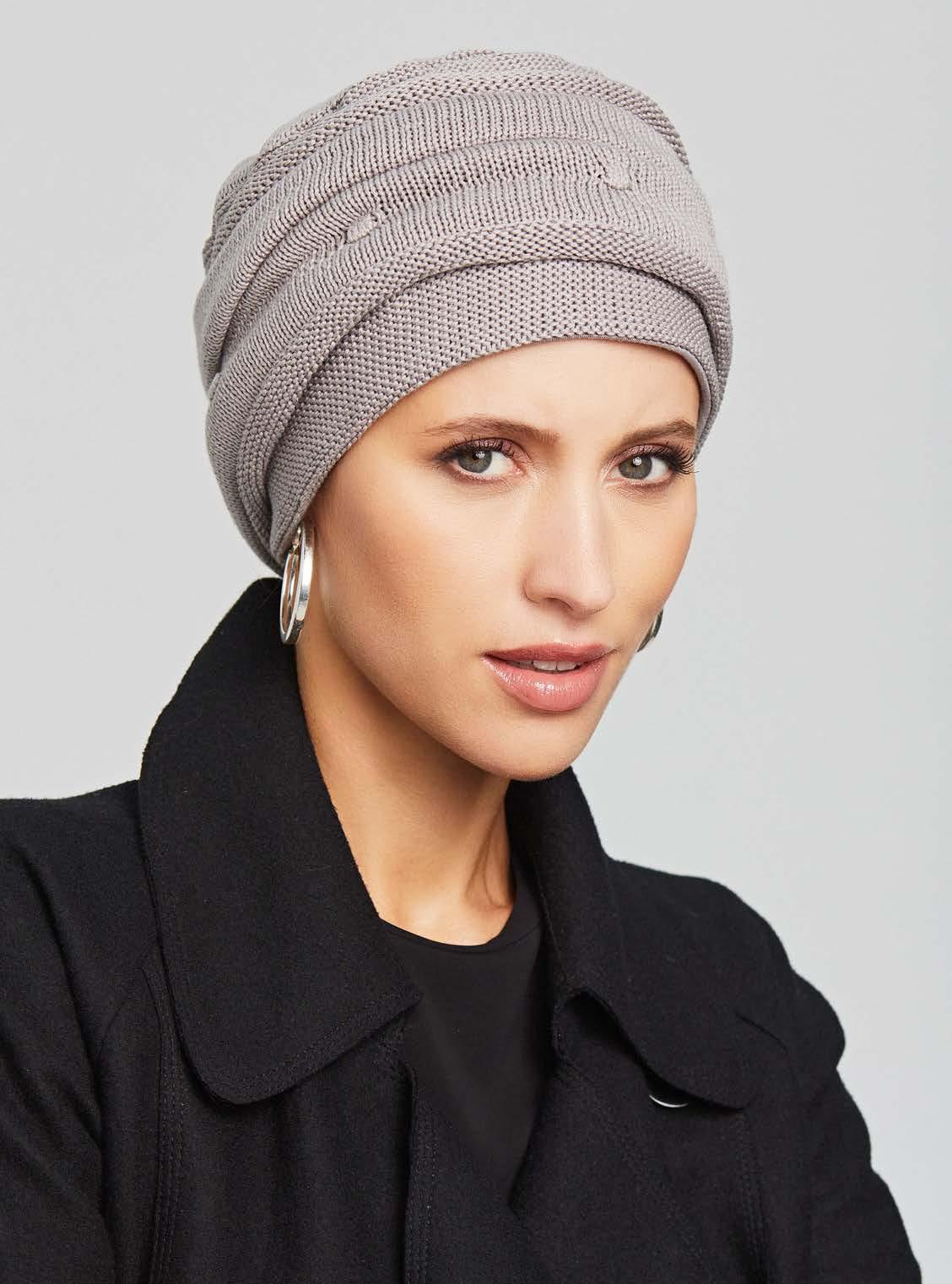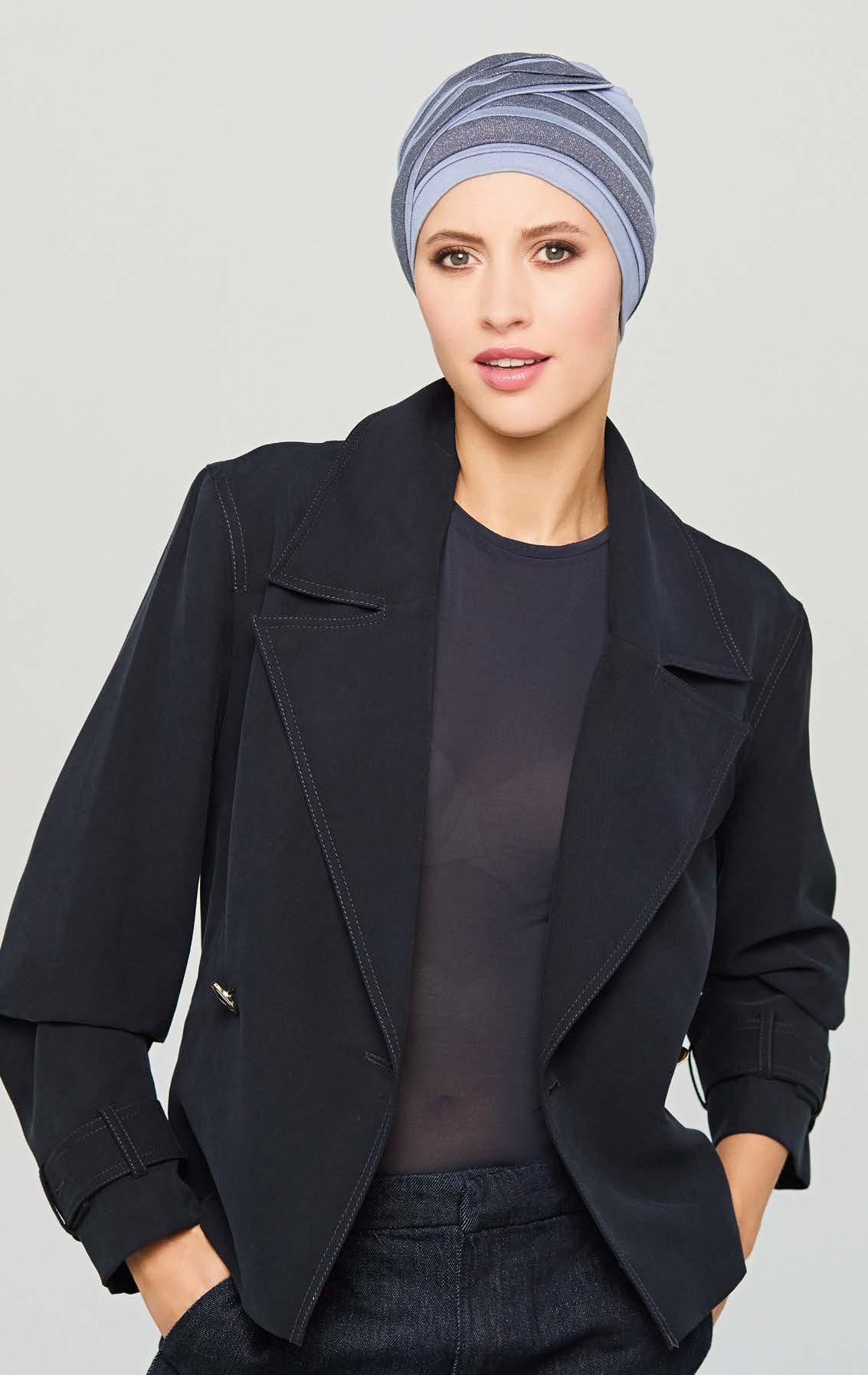 Scoprite il nostro assortimento completo nel nuovo catalogo di copricapi! Modelli raffinati, colori attuali, stili lussuosi e un comfort incredibilmente piacevole da indossare grazie al bambù.Oltre ai tessuti abituali, troverete molti turbanti con nuove fantasie, e anche esclusive versioni in tinta unita e stoffe straordinarie.