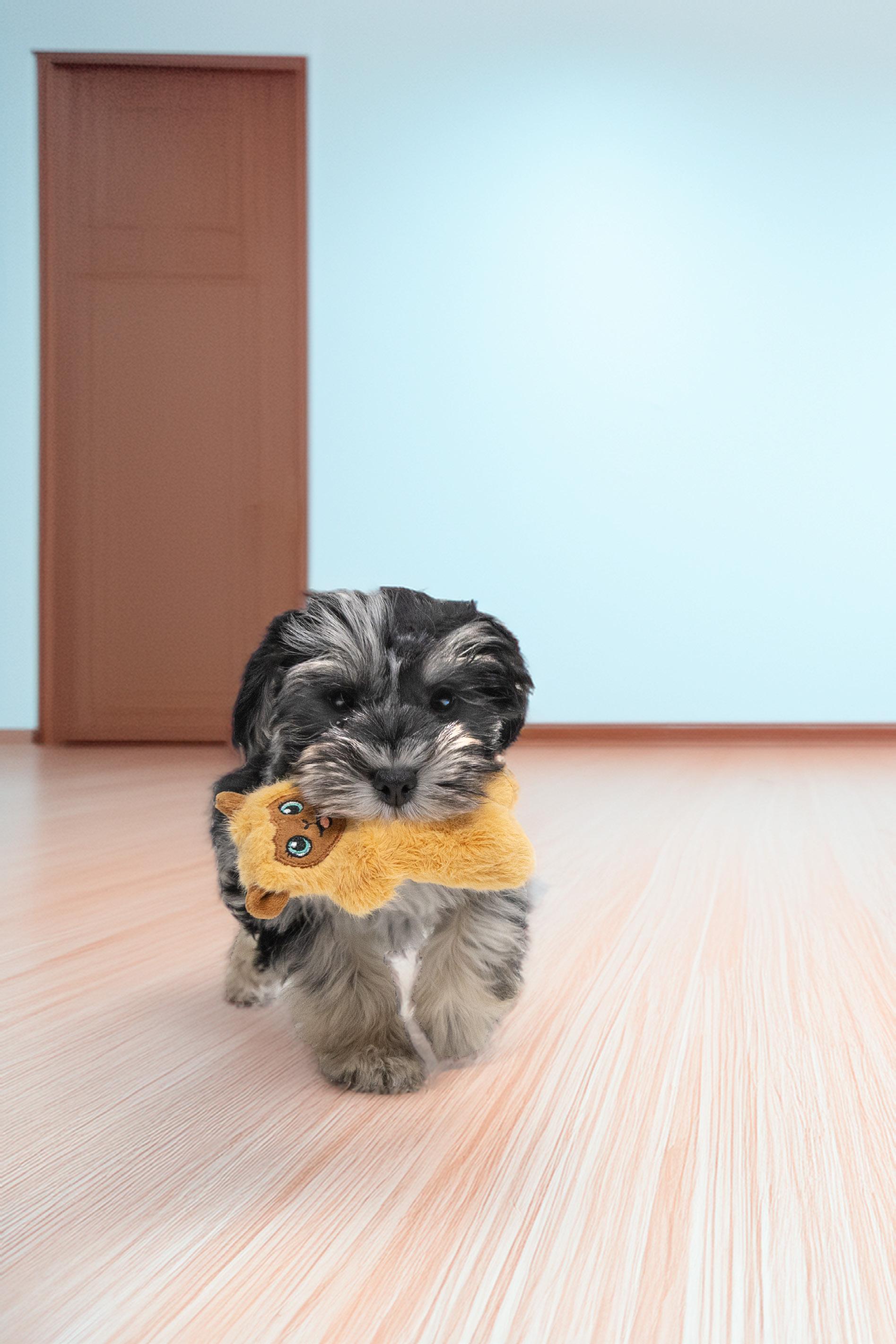 These long KONG Snuzzles Minis characters are made for little dogs who like to make big noises! Tiny and plump, the unique long shape is easy for dogs to pick up and carry, and fun for throwing during games of fetch. The full-body squeaker gives a boisterous call and creates a dense mouthfeel that entices chewing, gumming, and squishing. Velvety plush exterior makes these mini characters perfect for indoor play and snuggling.