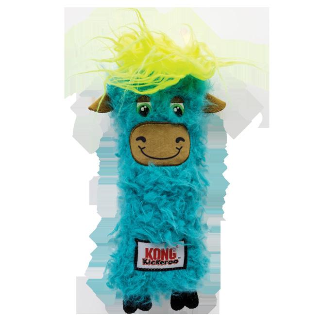 KONG® Kickeroo Highland Cows are the perfect toy for your cool kitty! A bright shaggy ‘do and long plush body filled with catnip & crinkle material entice playful cats to wrestle, bite, and kick with their hind paws for healthy, full-body play. Super-soft plush is perfect for snuggling after playtime.