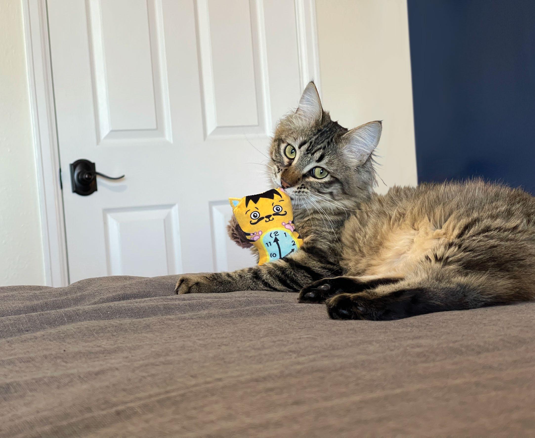 KONG Artz Cats are miniature masterpieces inspired by cats and world-famous artists. Now your cat can have an artist duo of their own—to cuddle with Feline Kahlo and pounce on Pablo Pi-CAT-sso or swat at Salvador Paw-Li and venture with Whiskers van Gogh. These crackling little works of art, filled with KONG Premium North American Catnip, each with a tail and ribbon for enticing chasing and swatting, will keep your cat batting, pouncing, and snuggling.