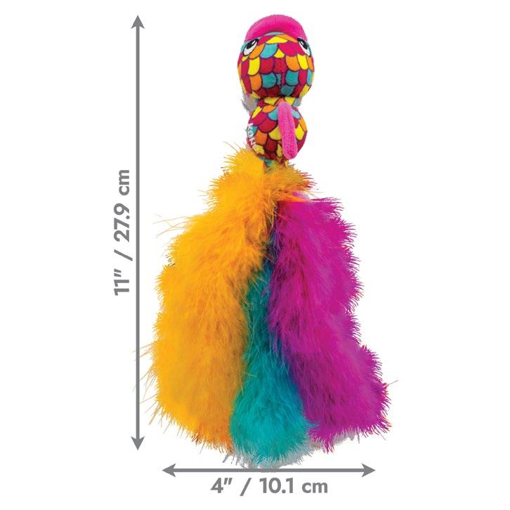 FAQs Material? Polyester, ABS, crinkle paper, and Turkey Feathers Catnip? Yes Noisemaking? Yes (Rattles and Crinkles)