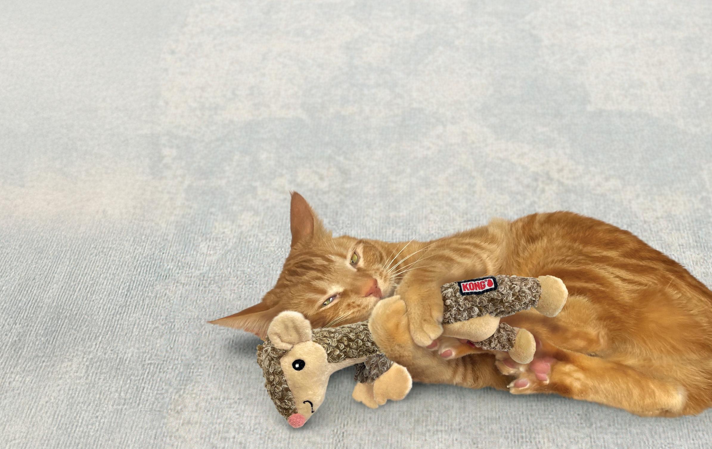 • Tête remplie d’un matériau bruissant et d’herbe à chats pour déchaîner des joutes énergiques