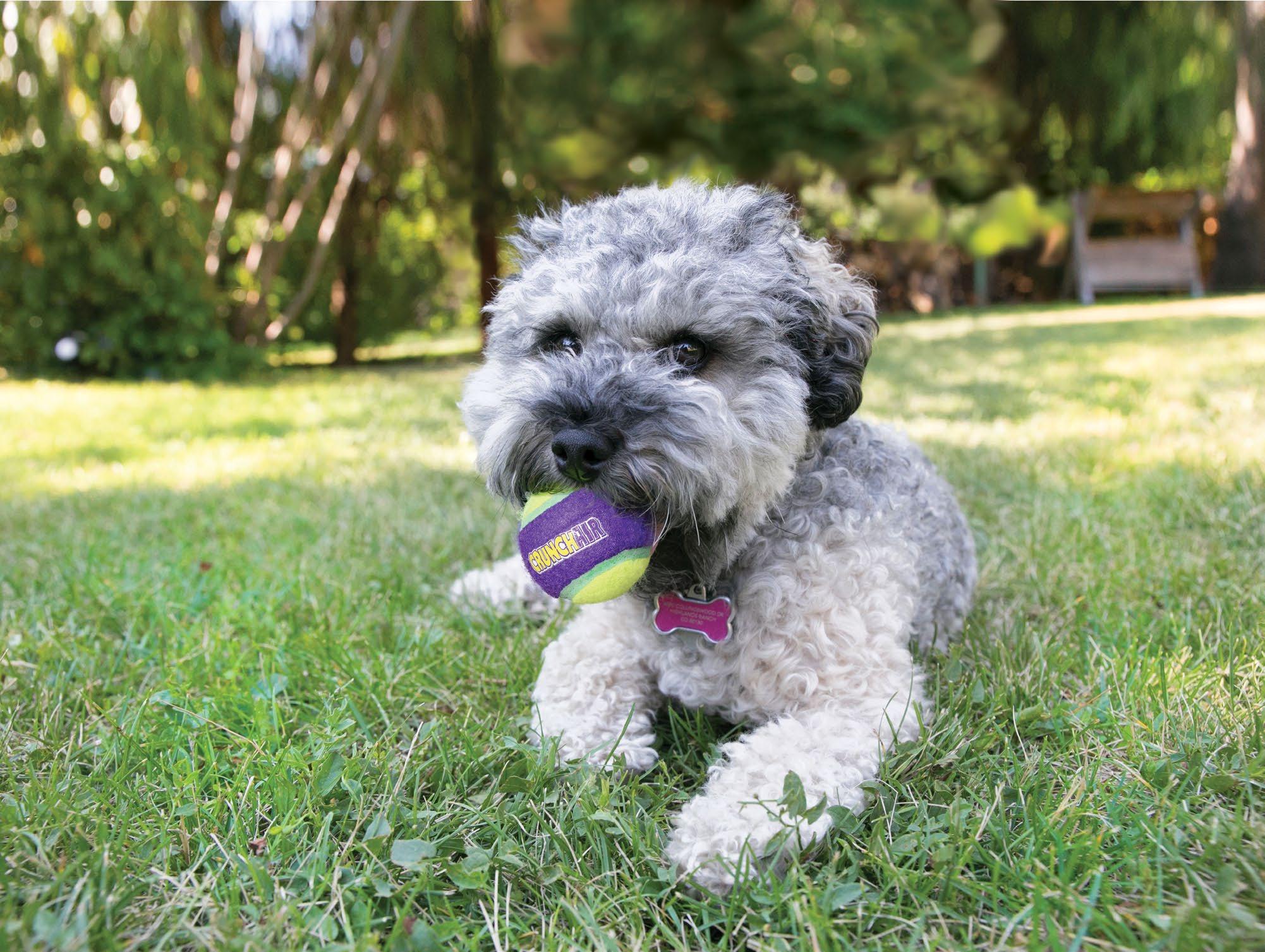 It’s all about the crunch! KONG CrunchAir creates a crunching sensation that delights dogs while fulfilling their natural chewing and chasing instincts. The KONG CrunchAir features an ideal bounce that is great for interactive play. It’s also durable, making sure that fetch, chase and chew sessions last even longer. Add to that the KONG Tennis material that is uniquely designed to be gentler on teeth and gums and dogs are sure to be rewarded again and again.