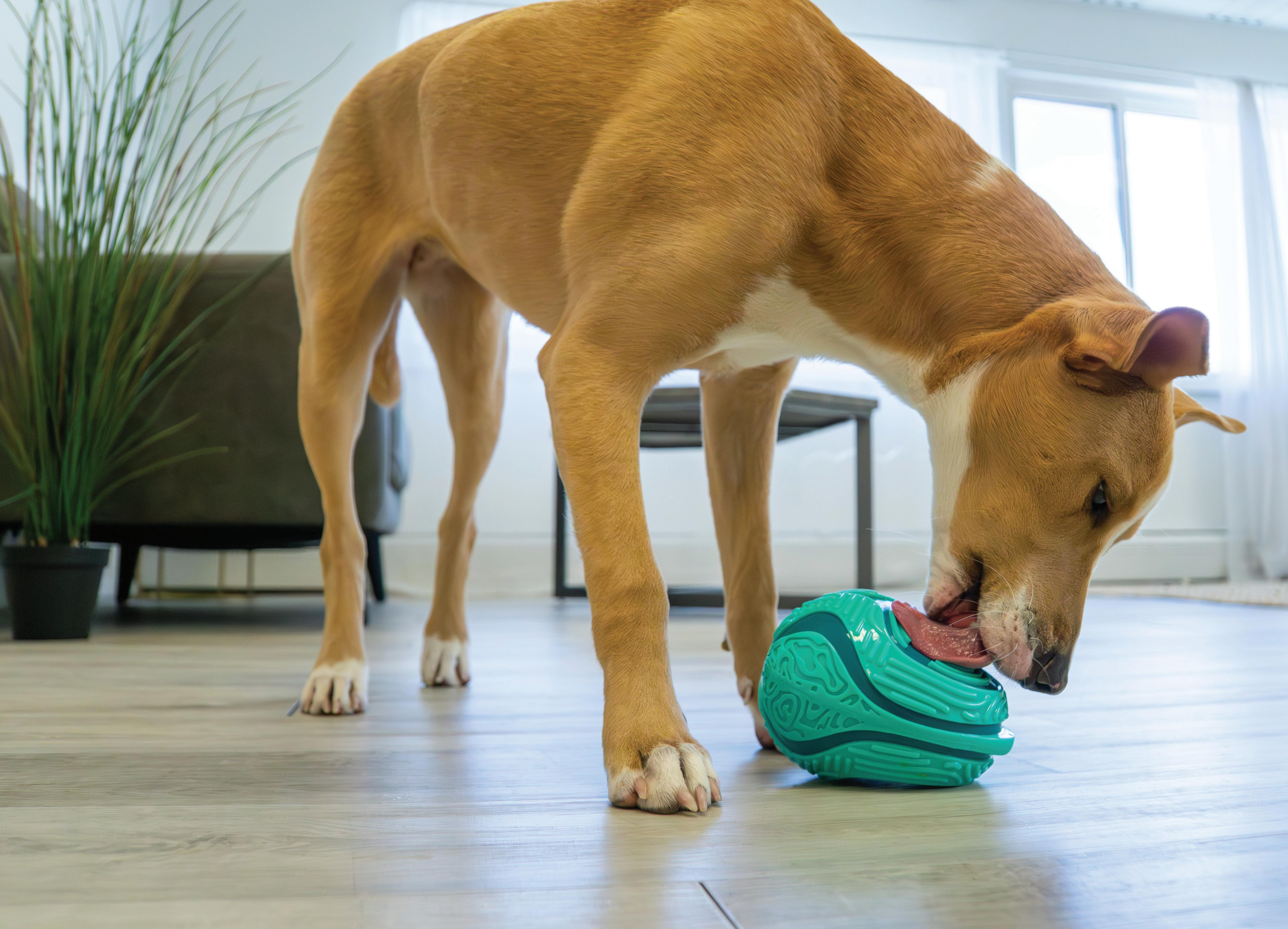 • Grooves hold goodies to encourage soothing licking in a dynamic, challenging shape