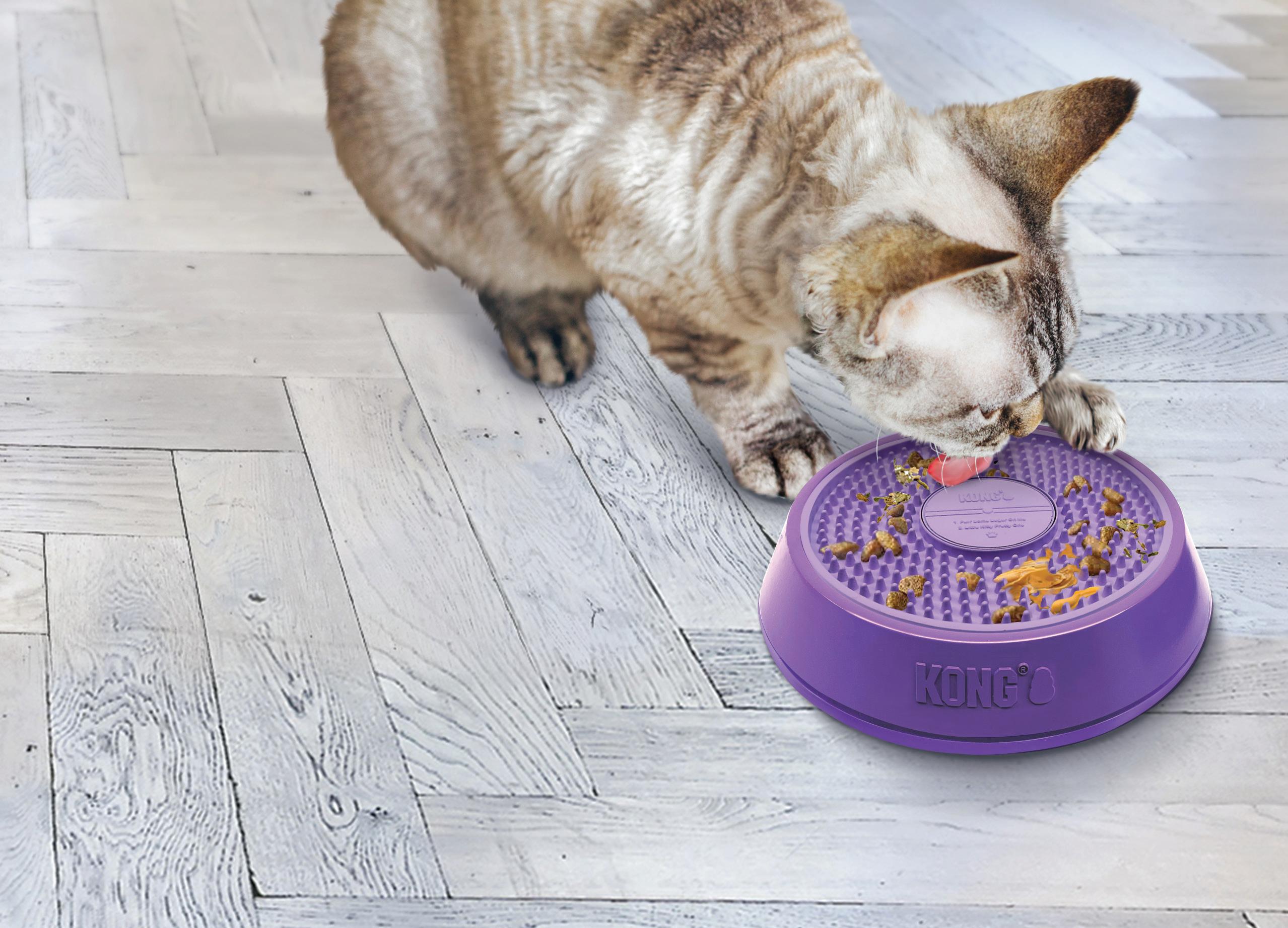 • Dynamische, uitdagend gevormde groeven bieden plaats aan traktaties om kalmerend likken te stimuleren