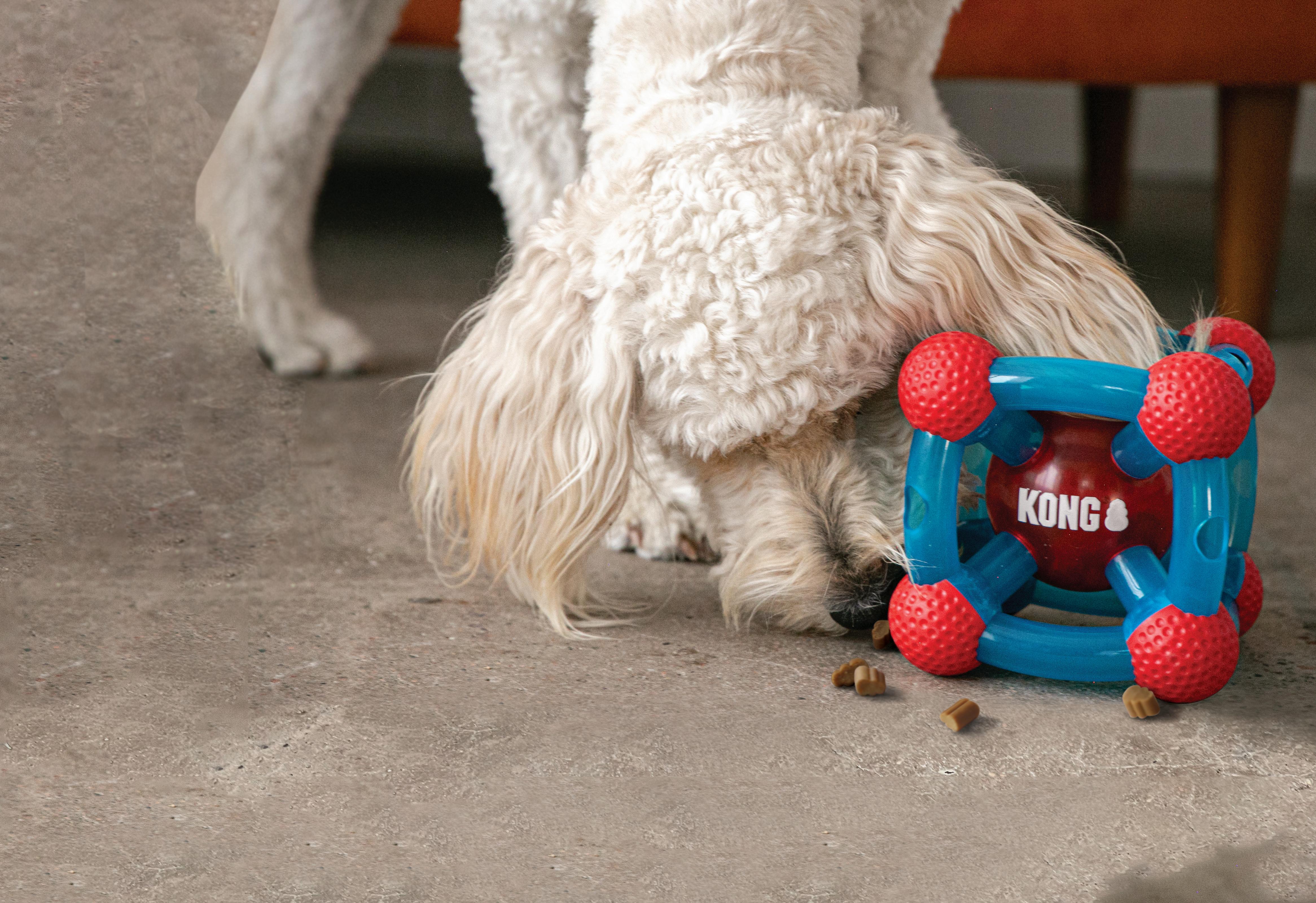 • Seis orificios para golosinas para una acción irresistiblemente impredecible