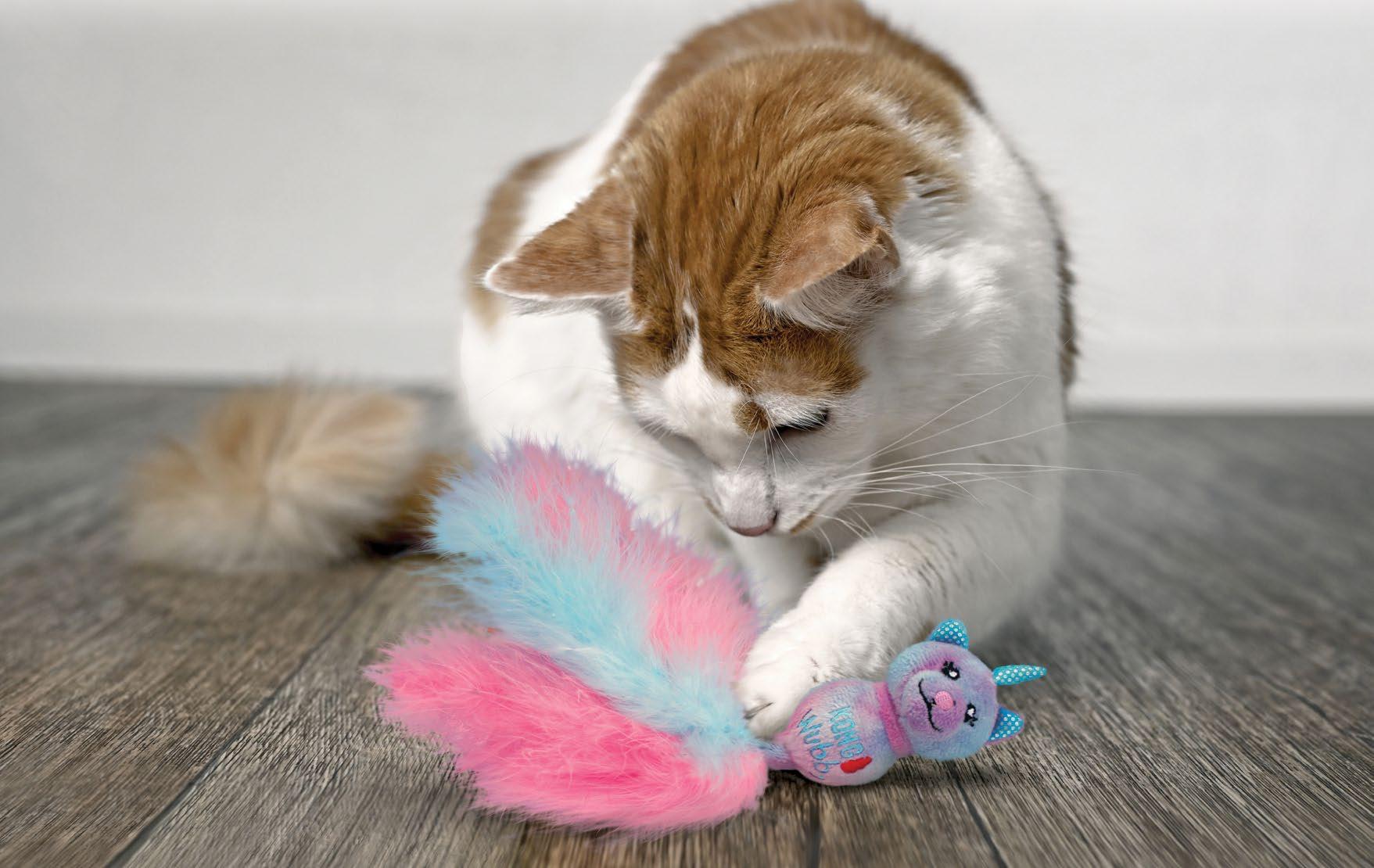 Cats Need to Play. TM • Il lungo giocattolo stimola l’azione del calciare in modo salutare • Il tintinnio stimola l’interesse e aumenta la durata del gioco • KONG Premium North American Catnip apporta entusiasmo