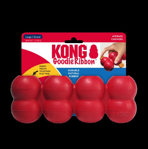 • Het duurzame KONG Classic Rubber bevredigt de natuurlijke kauwinstincten