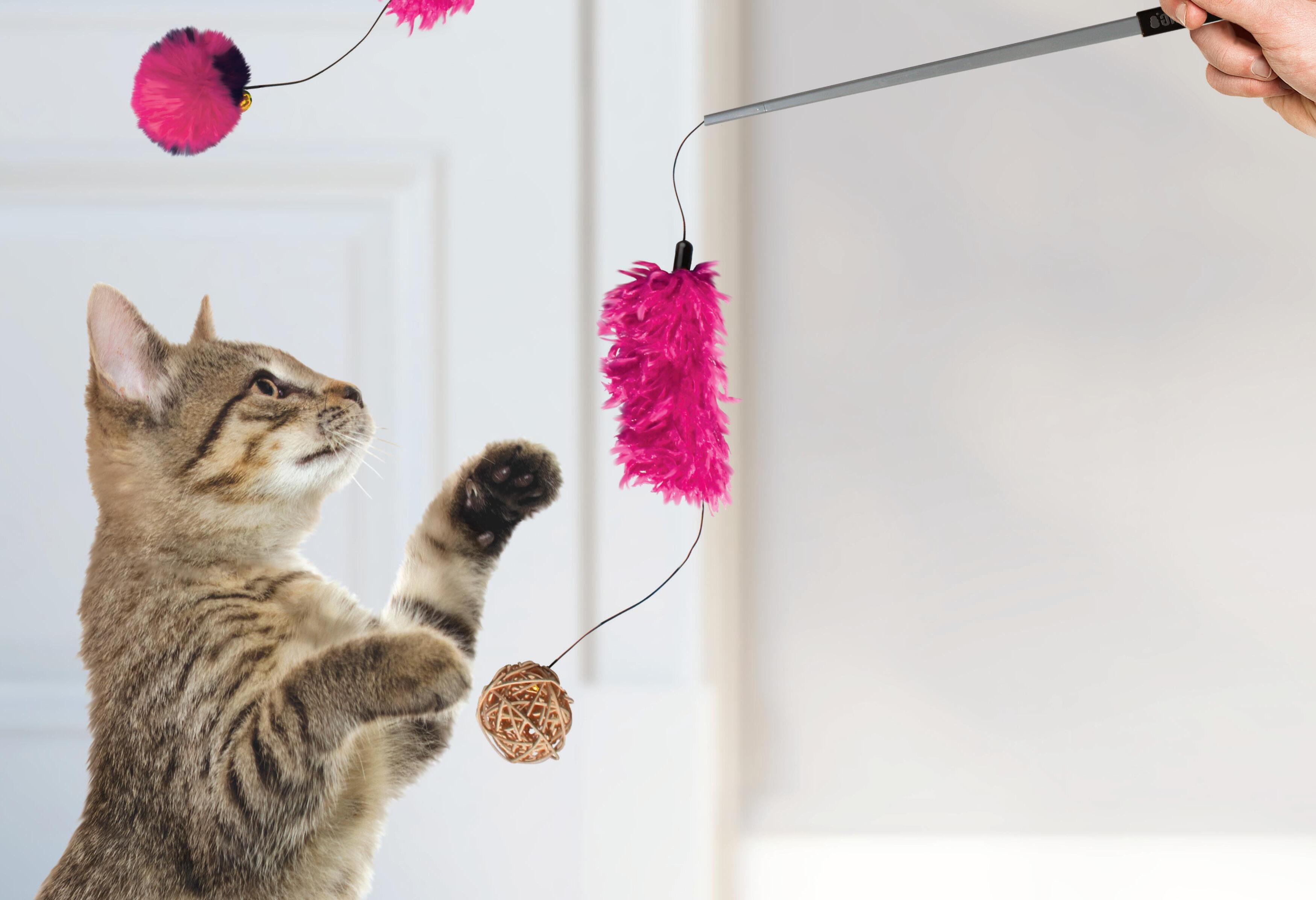 • Pelotitas de mimbre y pompones ideales para atrapar