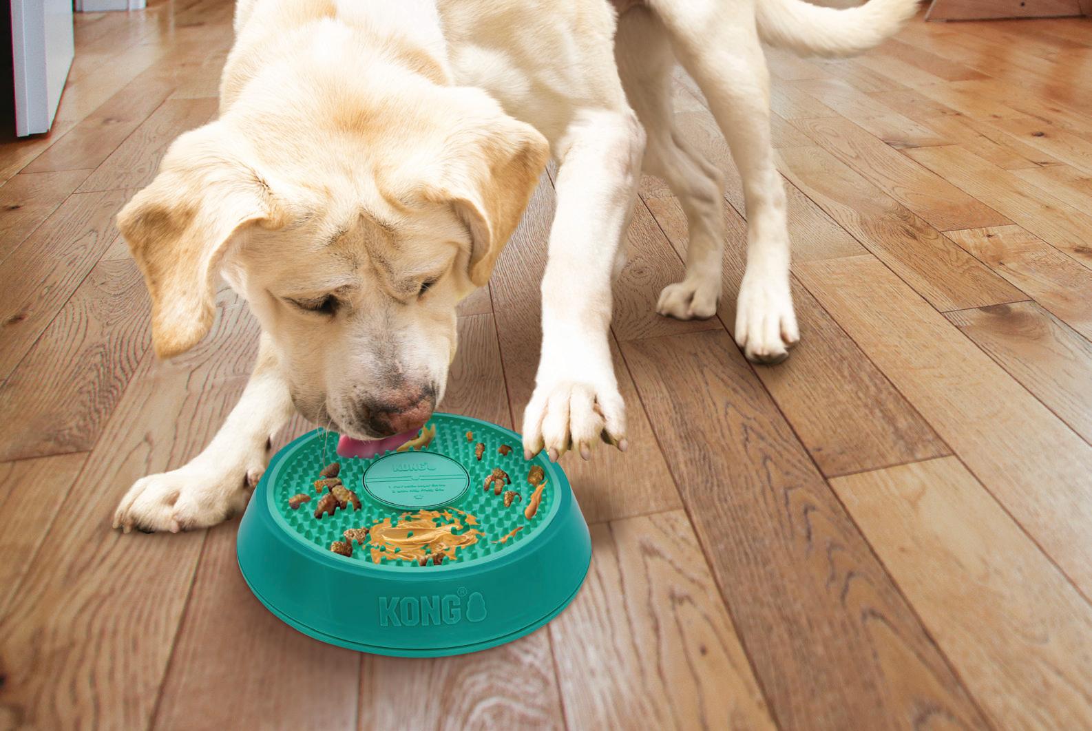 • As ranhuras mantêm os petiscos para incentivar a lambida suave em um formato dinâmico e desafiador
