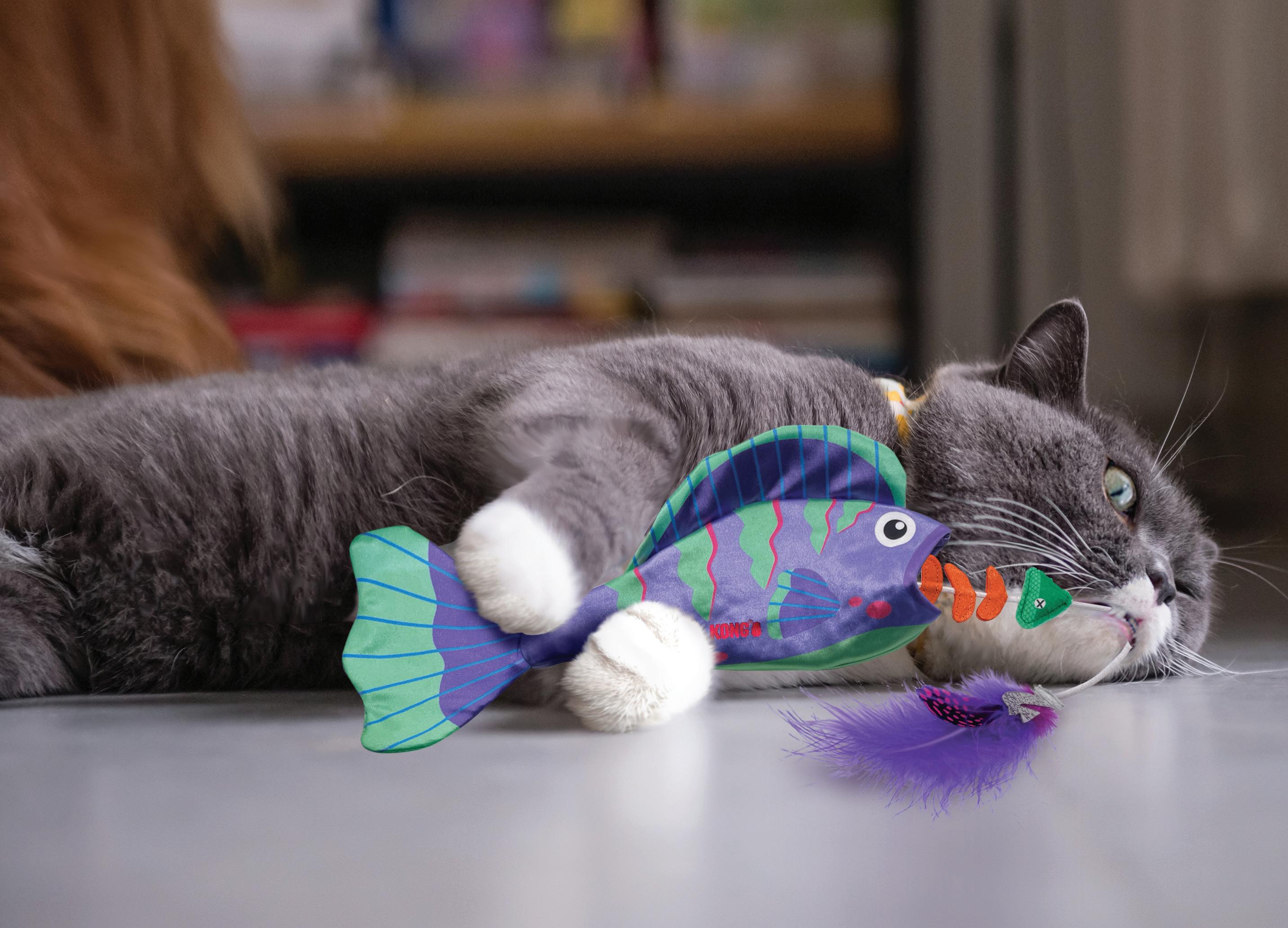 • O formato longo e brilhante convida os gatos para uma luta saudável e animada