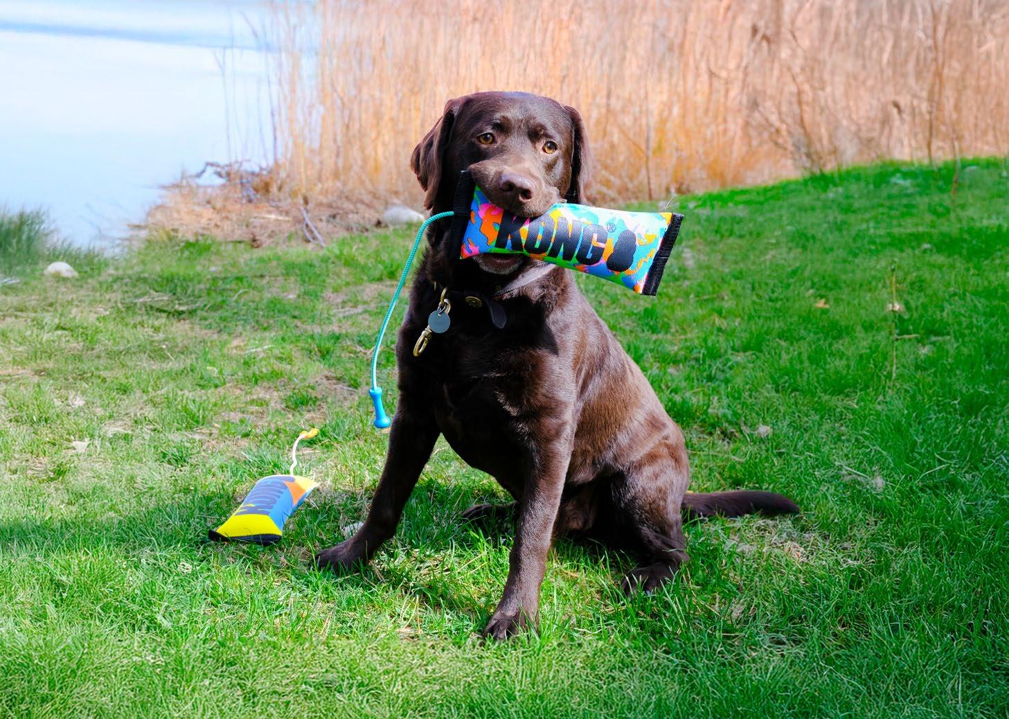• Het stevige en compacte lijfje stimuleert de natuurlijke stoei-, gooi- en kauwinstincten