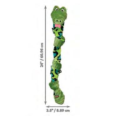 KONG SqueakStix is an extra-long and durable, fetch and tug toy that provides a safer alternative to wooden sticks. This rugged toy twists and flexes for dynamic tugging, featuring safely rounded edges and dual squeaker zones for double the fun. KONG SqueakStix have a big bounce for irresistible, unpredictable action. Squeakers will continue to squeak even when punctured, all adding up to long-lasting fun.
