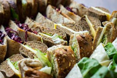 A convenient lunch that can be served in or near the hall. Two fresh, luxurious sandwiches, buns, or wraps per person. Soup with bread, dips, and butter. Fruit, fruit juice, and flavored water.