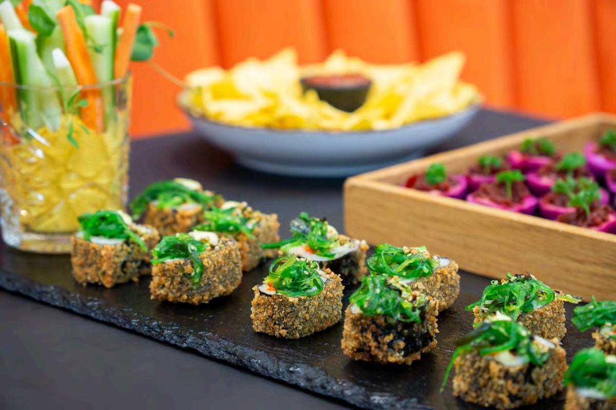 Groups of up to 25 people can choose from dishes with global influences and seasonal ingredients on the day of the meeting.