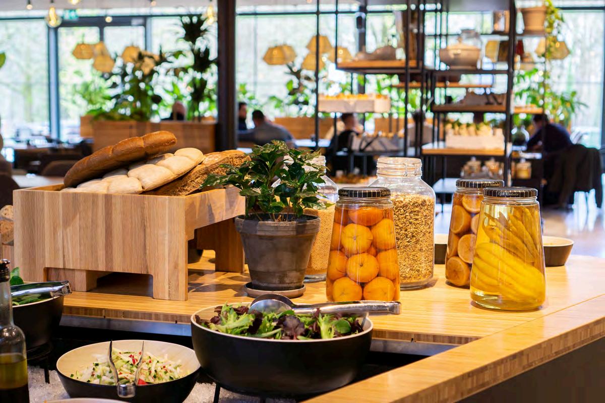 A good breakfast is the perfect start to a successful day. At KonneKt restaurant, bar, and lounge, we welcome you every morning with an extensive breakfast buffet packed with delicious, fresh products. From oven-fresh bread and savory spreads to sweet pastries and hot dishes: there's something for everyone. You can also create your own favorite combination of yogurt, granola, superfoods, and fruit at the yogurt bar.